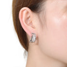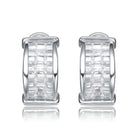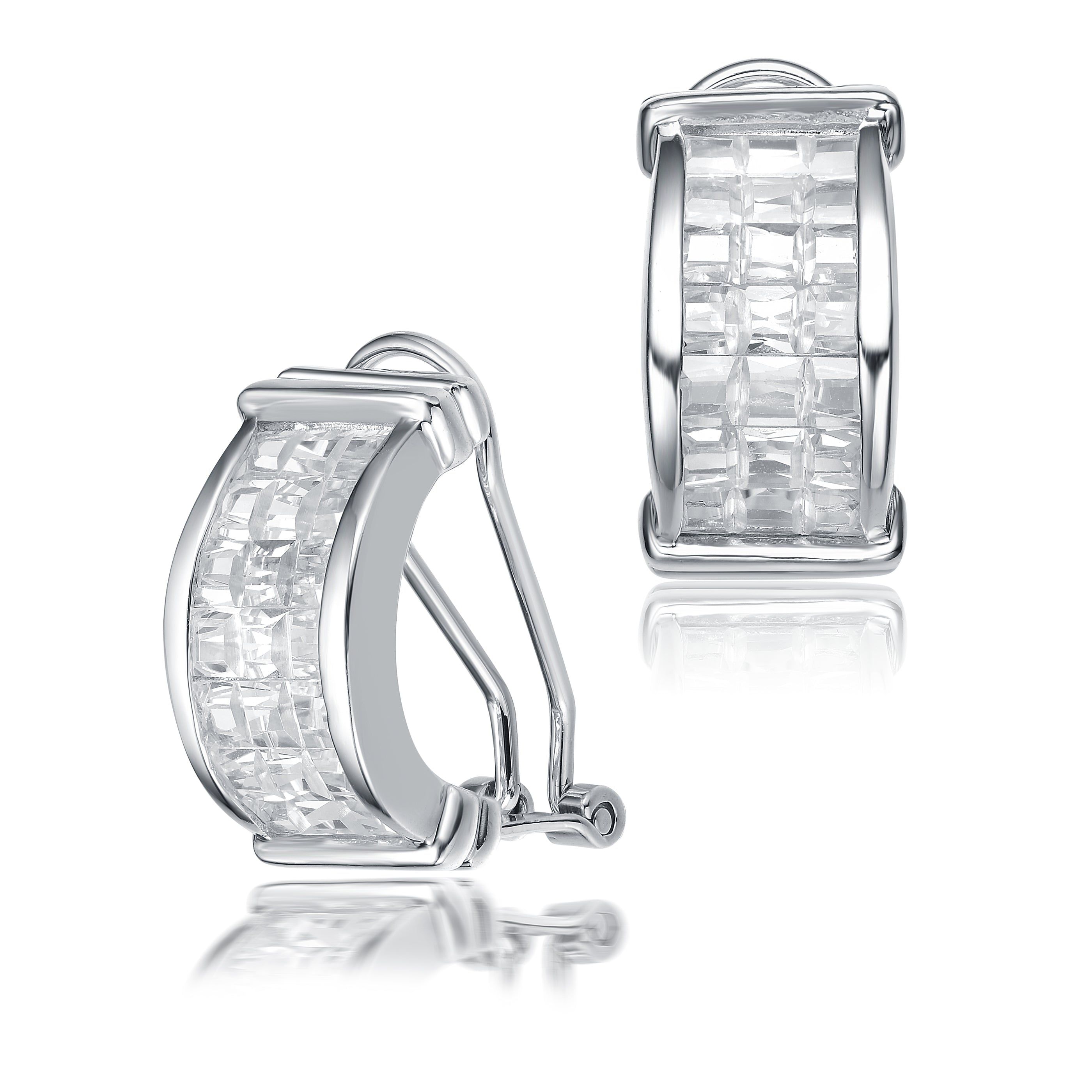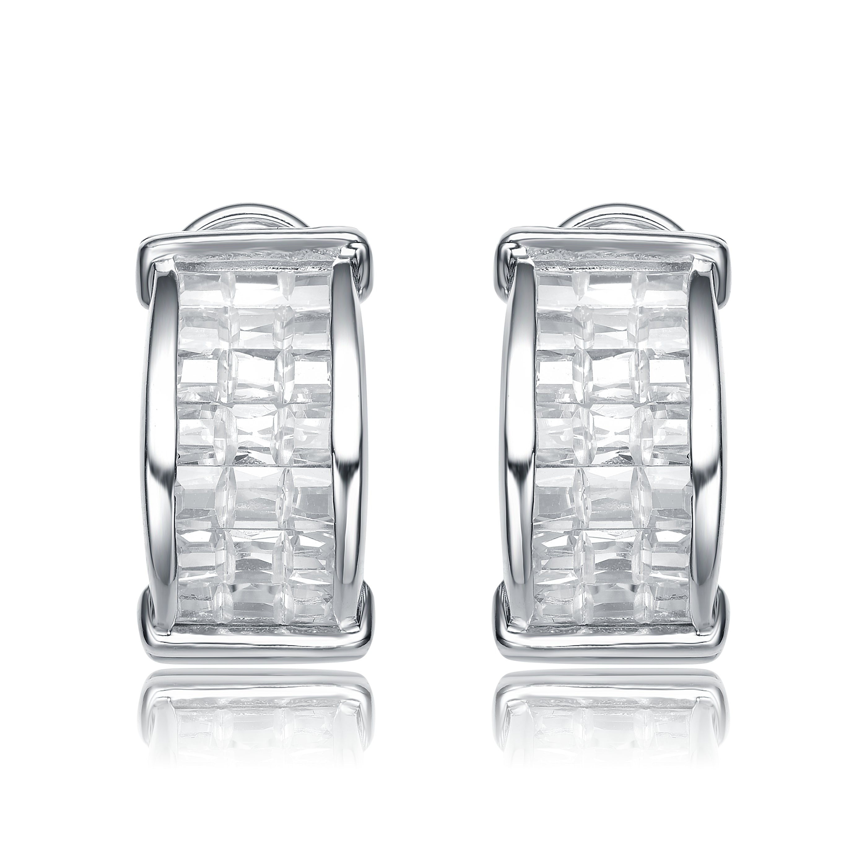 Elevate your style with these elegant sterling silver hoop earrings, featuring a brilliant arrangement of channel-set cubic zirconia stones. The sleek and polished design, enhanced with rhodium plating, ensures lasting shine and resistance to tarnish. These versatile earrings are perfect for adding a touch of sophistication to both casual and formal outfits, making them a timeless addition to your jewelry collection.