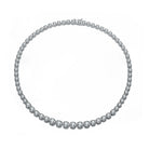 This sterling silver necklace has a classic design composed of sterling silver round links each with a clear cubic zirconia in it. The flowing link accents any kind of formal or casual women’s wear.