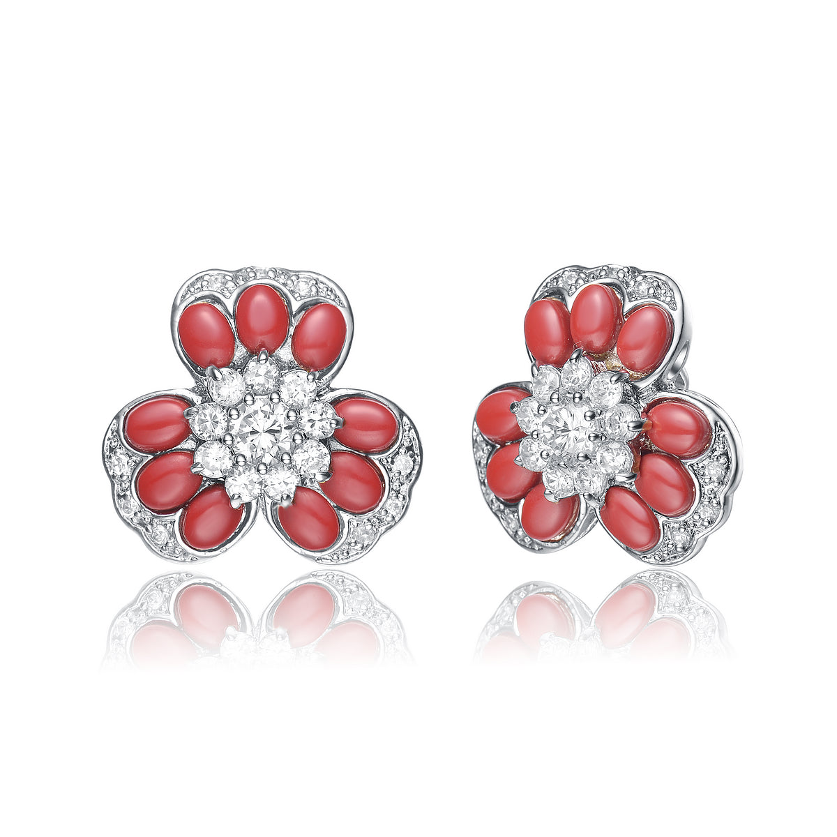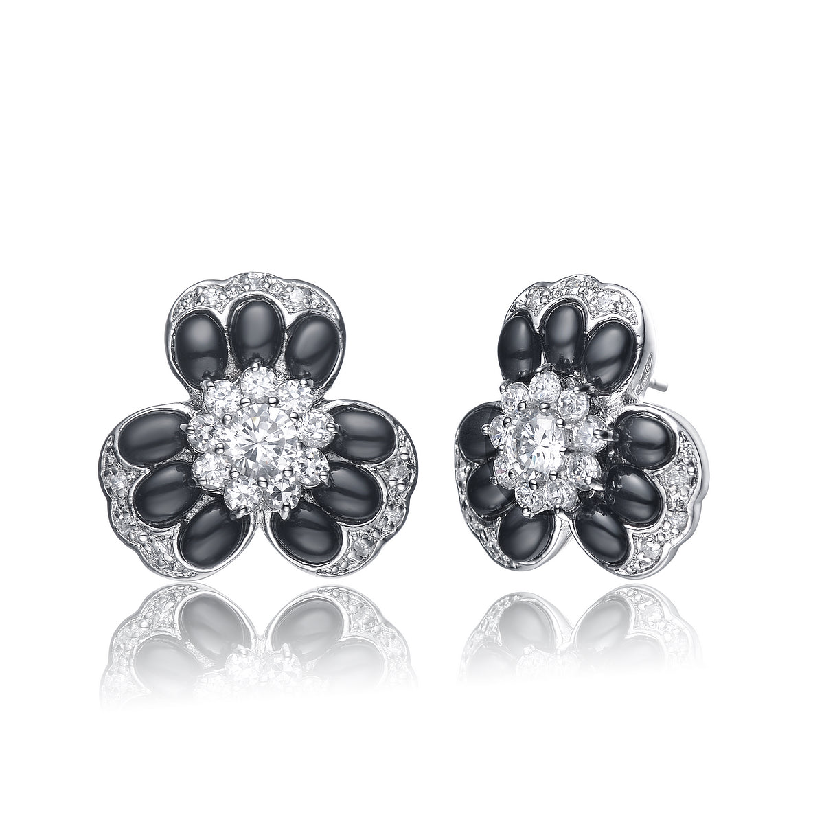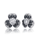 Black and clear cubic zirconia stones form a three-petal flower in this sterling silver button earring set. A delightful match for a breezy, spring day.