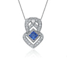 Try dressing up a drab outfit with this sterling silver necklace. It highlights a beautiful blue shaped cubic zirconia solitaire, surrounded by an intricate design of clear cubic zirconias.