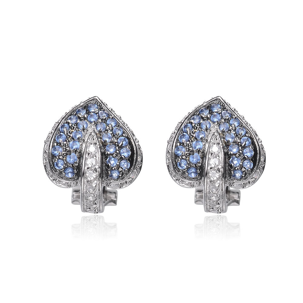 This pair of sterling silver earrings is stylish and fun. Clear and blue cubic zirconia stones form the shape of a spade and make this an interesting set.