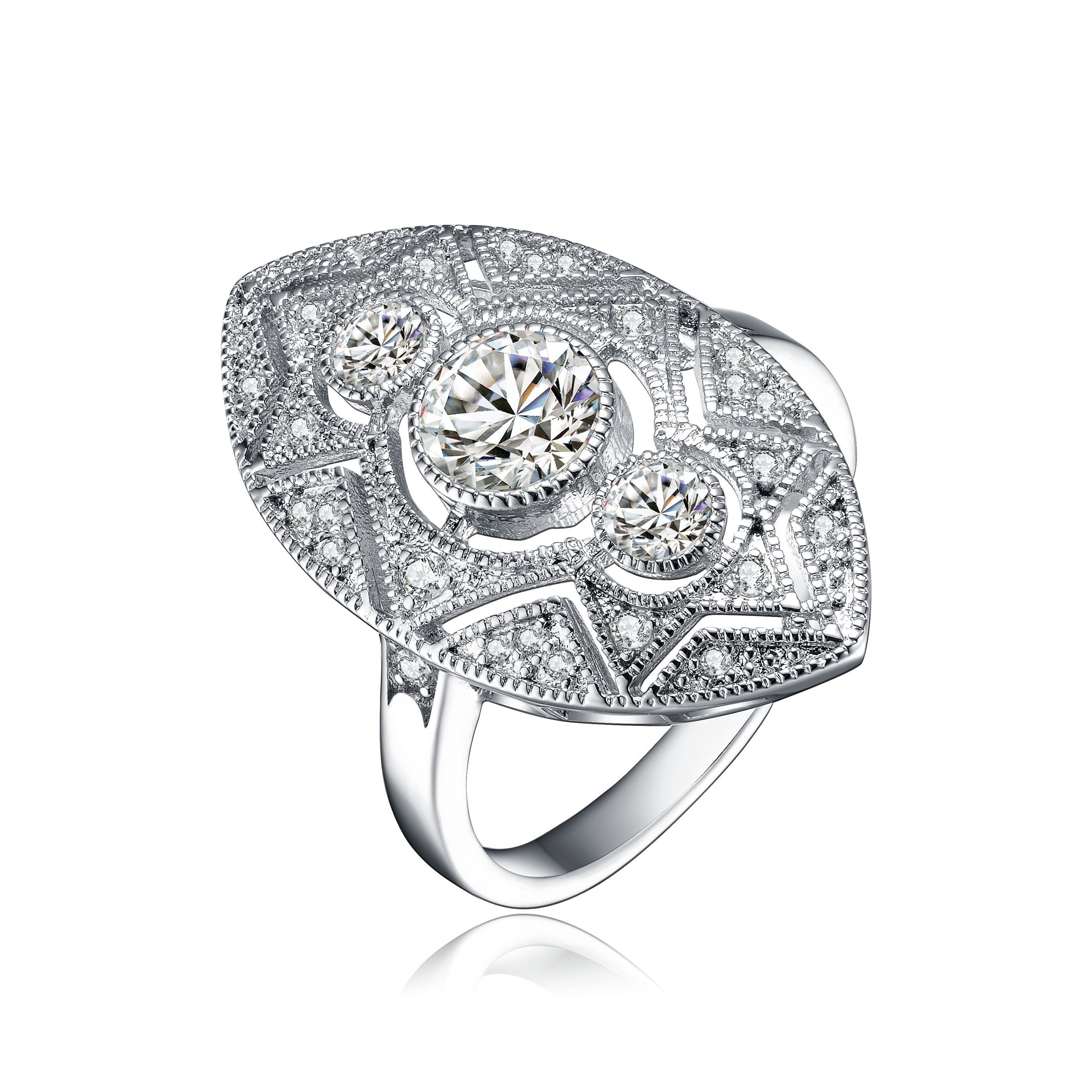 Sterling Silver Clear Round Cubic Zirconia Filigree Ring