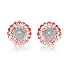 Stylish Sterling Silver 14K Gold Plated Flower Stud Earrings. It feature center of clear cubic zirconia stone. Crafted in Sterling Silver with Gold Plated and secures with a butterfly clasp. Available in rose gold as well.