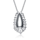 Creativity is definitely the aim of this necklace. It features a core made from sterling silver and surrounded by clear cubic zirconia stones.