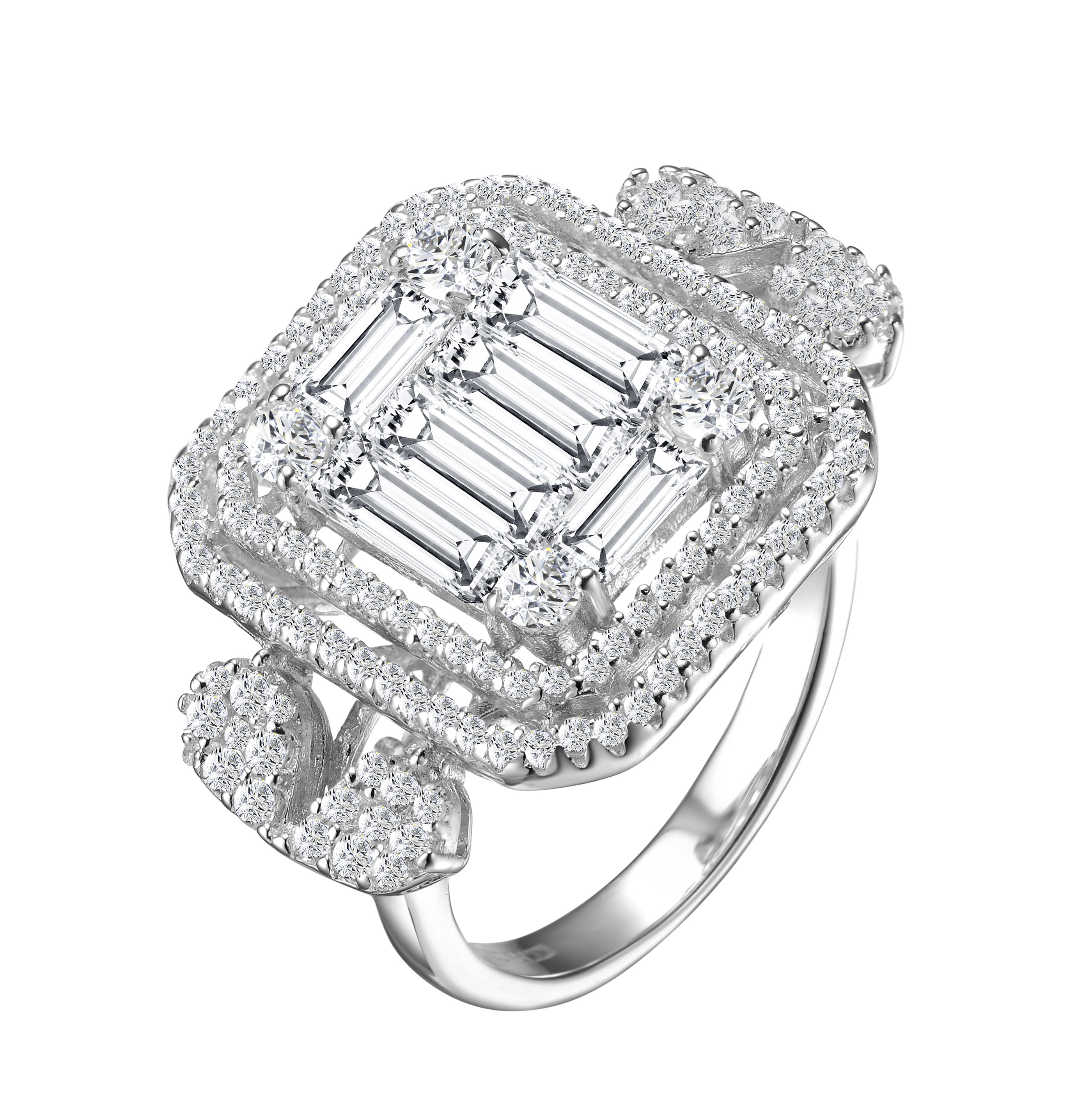 This ring accented with clear white cubic zirconia square shape design on a sterling silver ring. makes it more stunning and elegant. Beautifully crafted ring features a square-shaped clear cubic stones, and it is available in size 6,7,8.