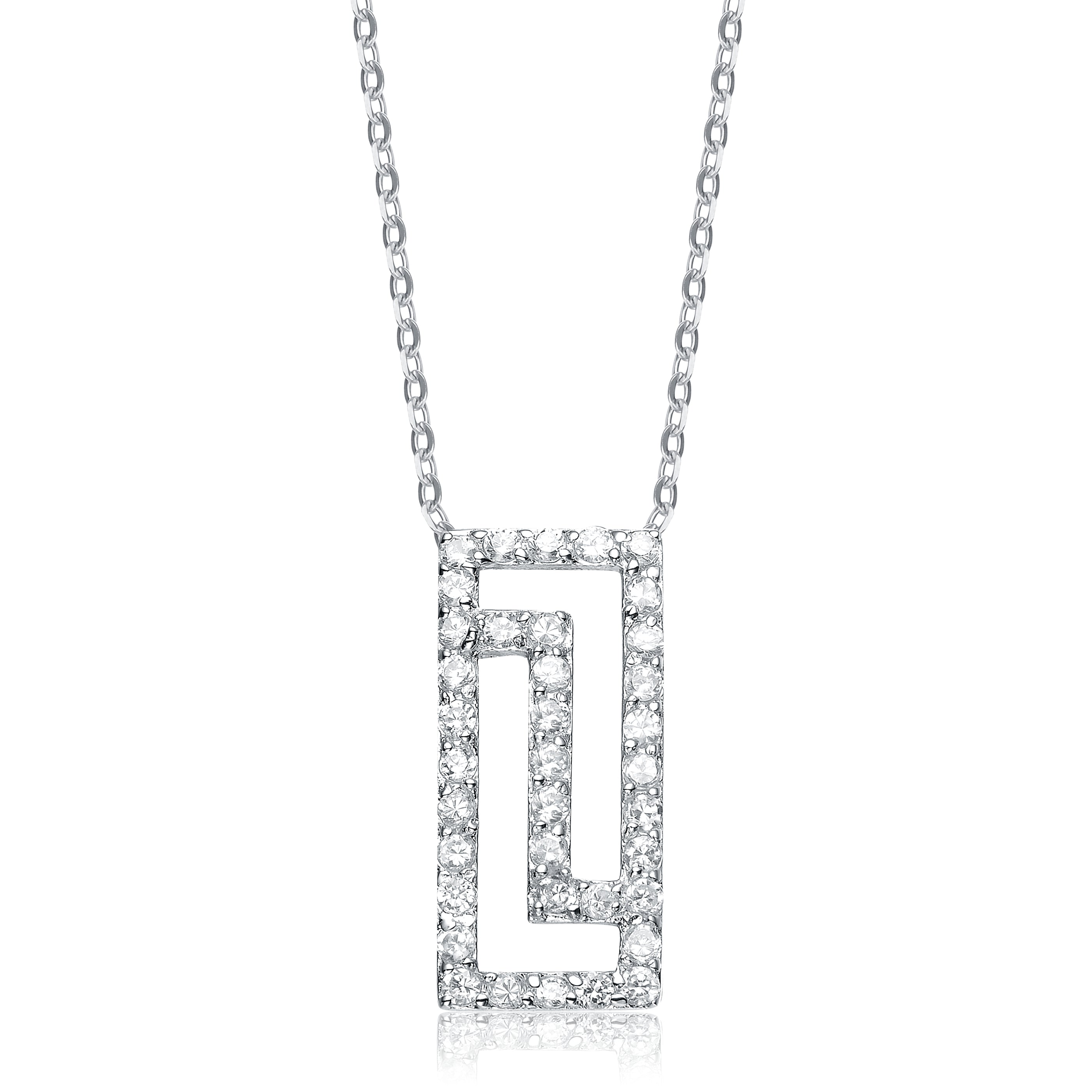 Looking to add some edge to your collection? This angular pendant is carefully constructed from sterling silver and cz stones.