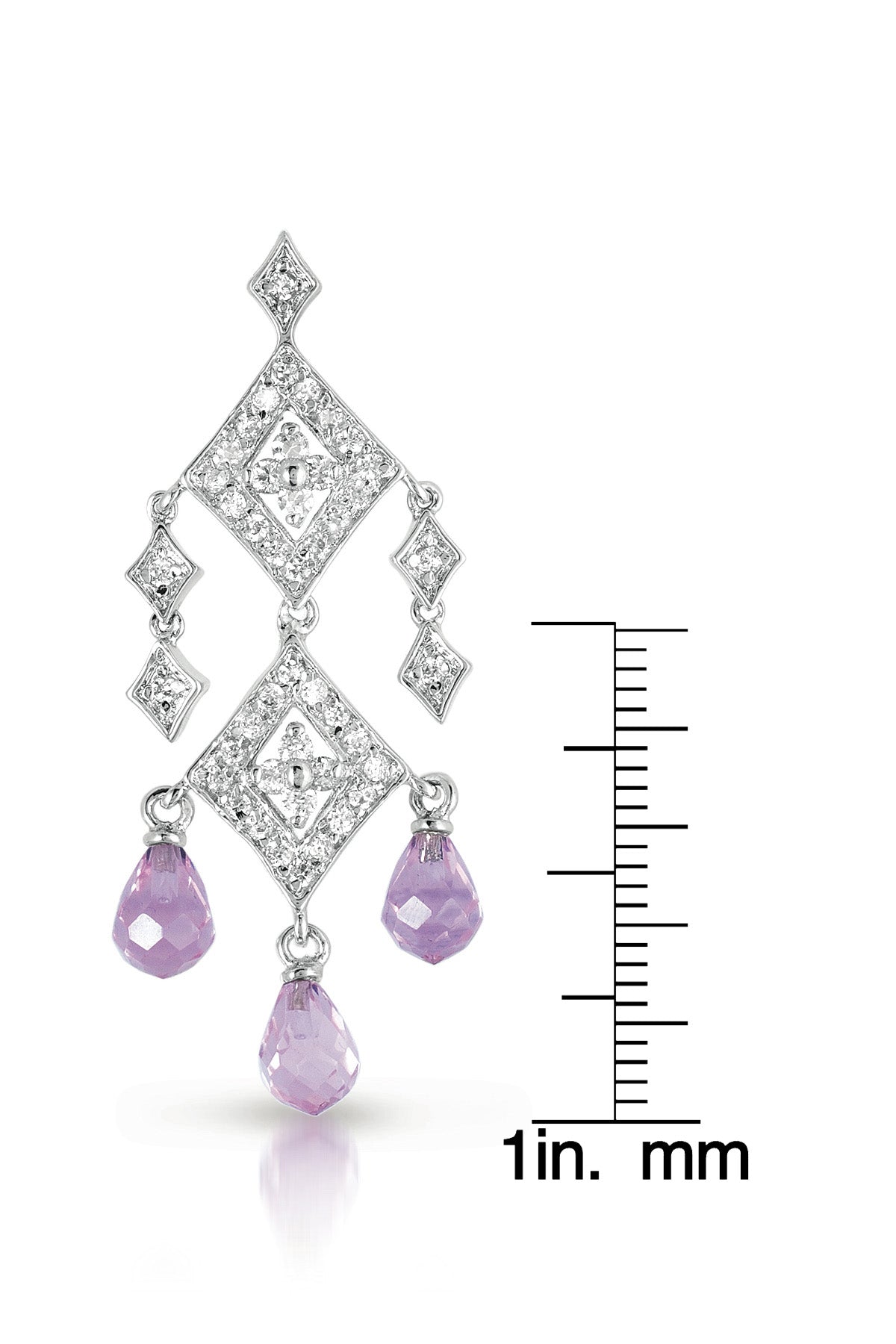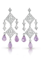 C.Z. Sterling Silver Rhodium Plated Sapphire Chandelier Earrings Shaped Dangling Cubic Zirconia Simulated Pink Sapphire Briolette Earring.
