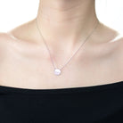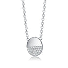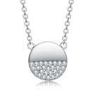 Show off your glam with this pendant necklace. The pendant has round shape and features two semi circles, the bottom semi circle is paved with clear round Cubic Zirconia stones, and the other semicircle is plain, silver semicircle.This Sterling Silver Pendant Necklace secure with a spring ring closure.