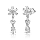 Sterling Silver Gold Plated with Cubic Zirconia Cluster Snowflake Formal Dangle Earrings.These ultra-glam sterling silver white gold plated dangle earrings feature a dazzling display of mixed cut -like cubic zirconias prong set in a snowflake and linear drop. Butterfly backs keep these show-stopping earrings secure, making them an effortless selection for a sophisticated look and perfect for your next special occasion. A rich shine brings out the fire of these stones, giving these pretty earrings a dose of enchantment.