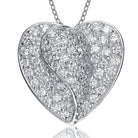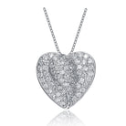 Many white cubic zirconia are placed in a pave setting within a sterling silver heart and would definitely be the perfect accessory for any woman.