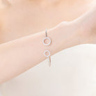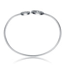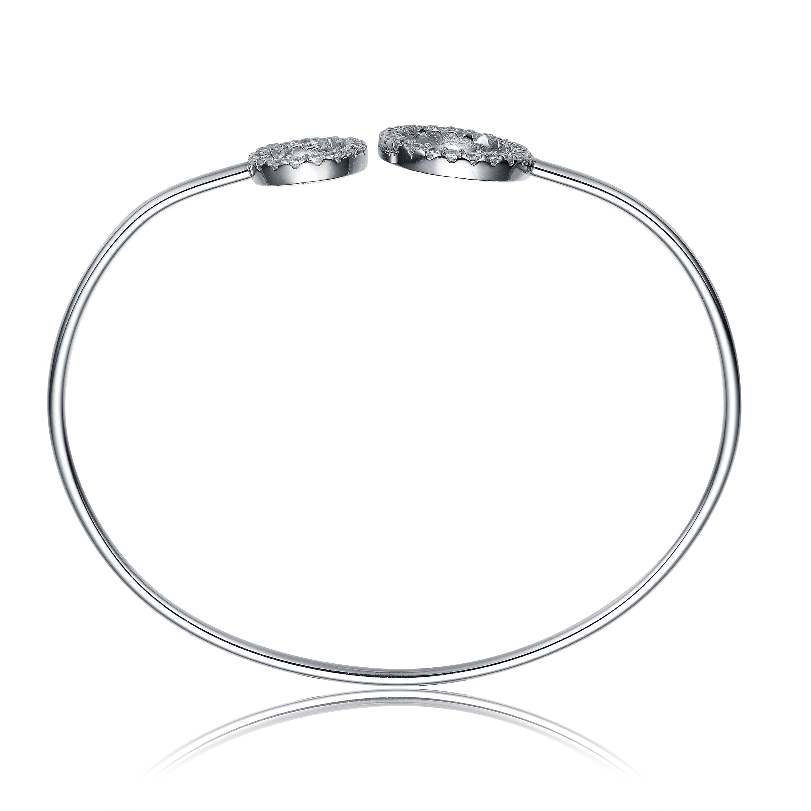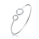 For a graceful and subtle appearance try this sterling silver bangle. It displays two open halos of clear cubic zirconia stones.