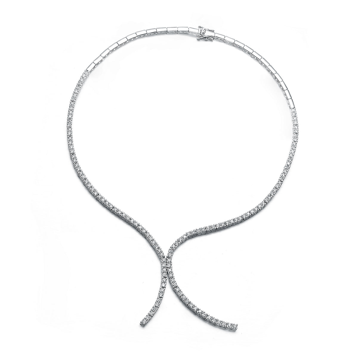 Elevate your style with this exquisite double tennis necklace. It exudes sophistication with its sparkling white round-cut cubic zirconia stones, all delicately set in high-quality .925 sterling silver. The necklace offers a secure and elegant finish with its sleek box clasp, making it the perfect accessory to enhance any outfit.