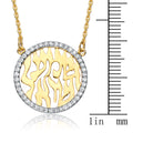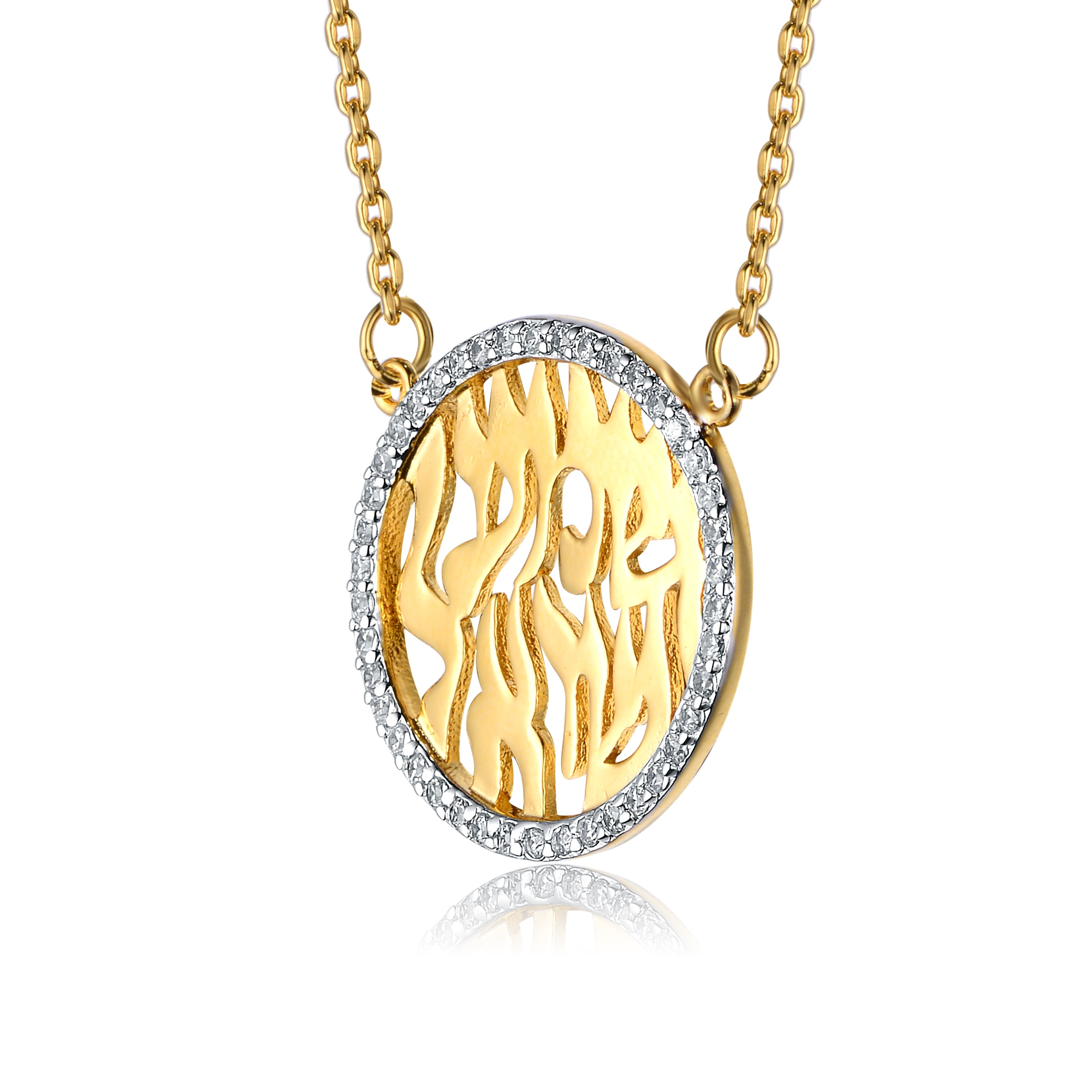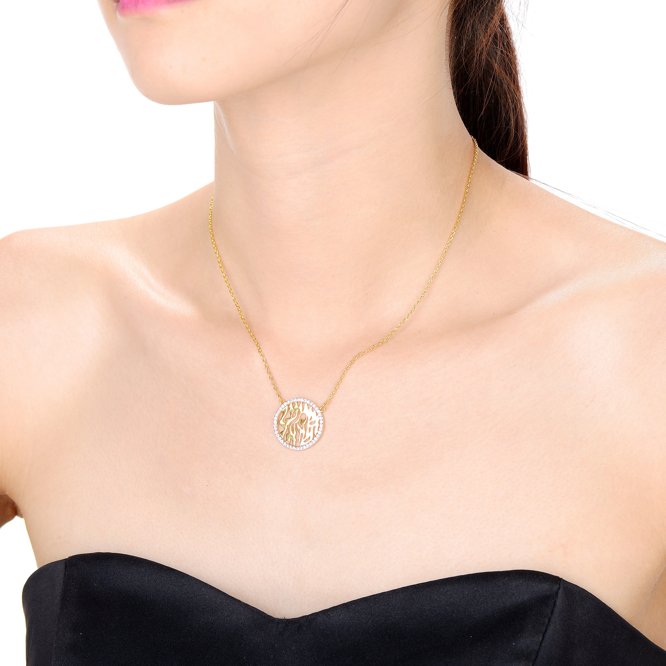 This necklace is great for casual outfits. It features a heart shape with clear cubic zirconia stones and sterling silver gold plated flames that sit in the middle.