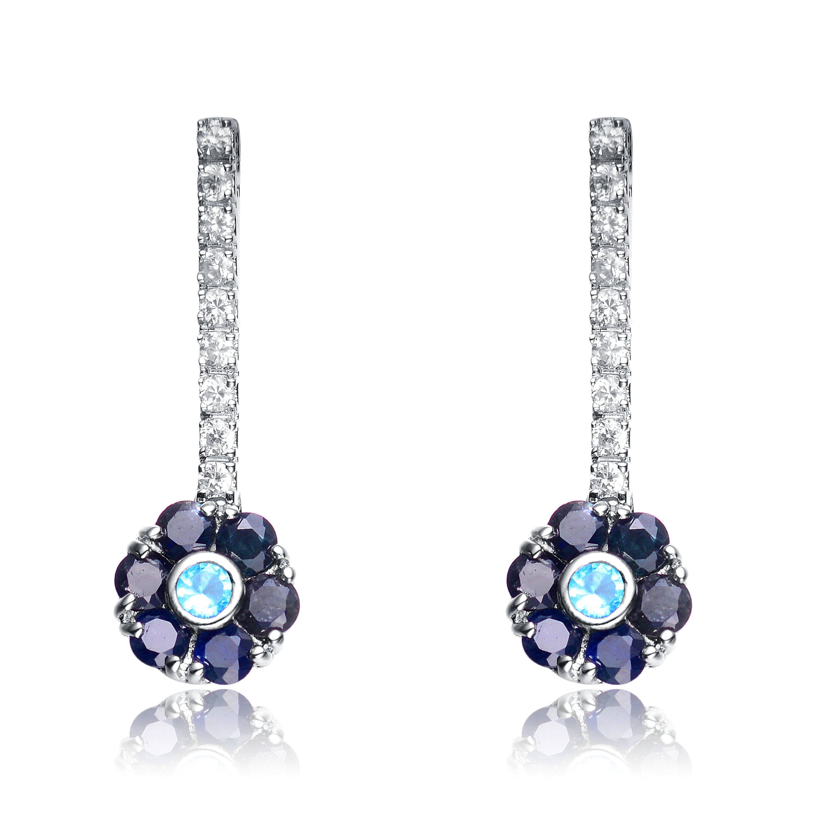 Fun yet elegant, these floral inspired drop earrings are great for any occasion. Each set features black and blue cz stones.