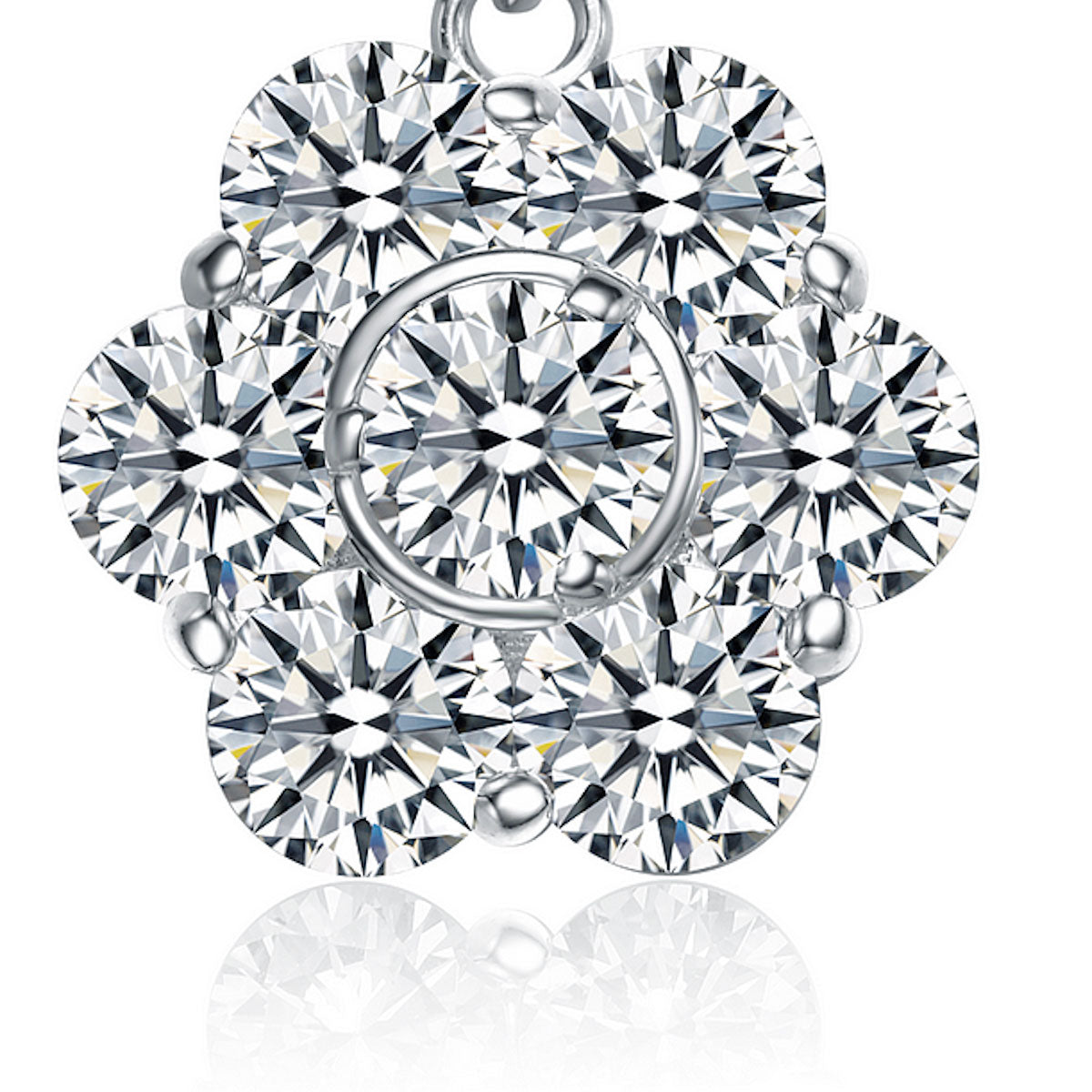 Sterling Silver Cubic Zirconia Flower Shape Necklace