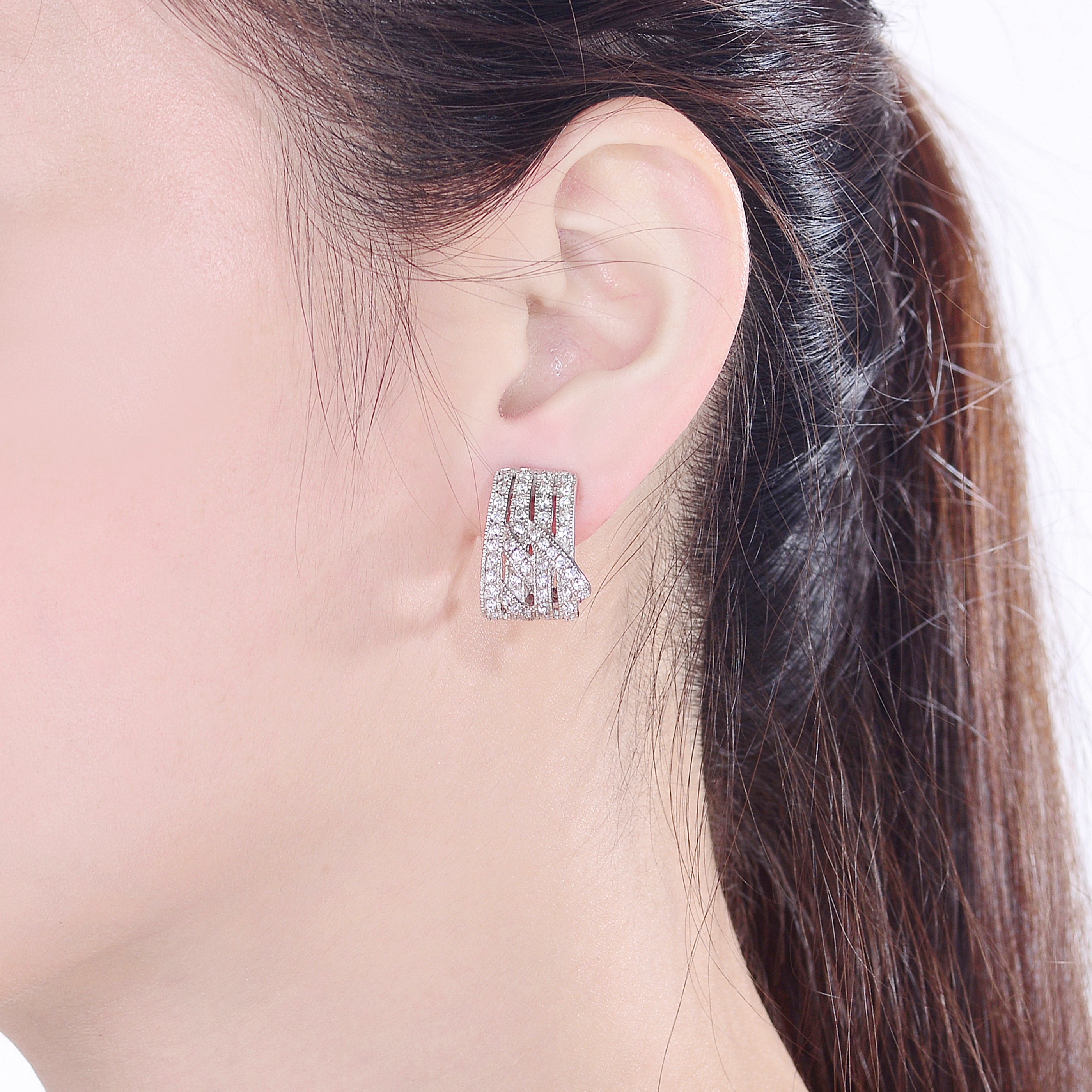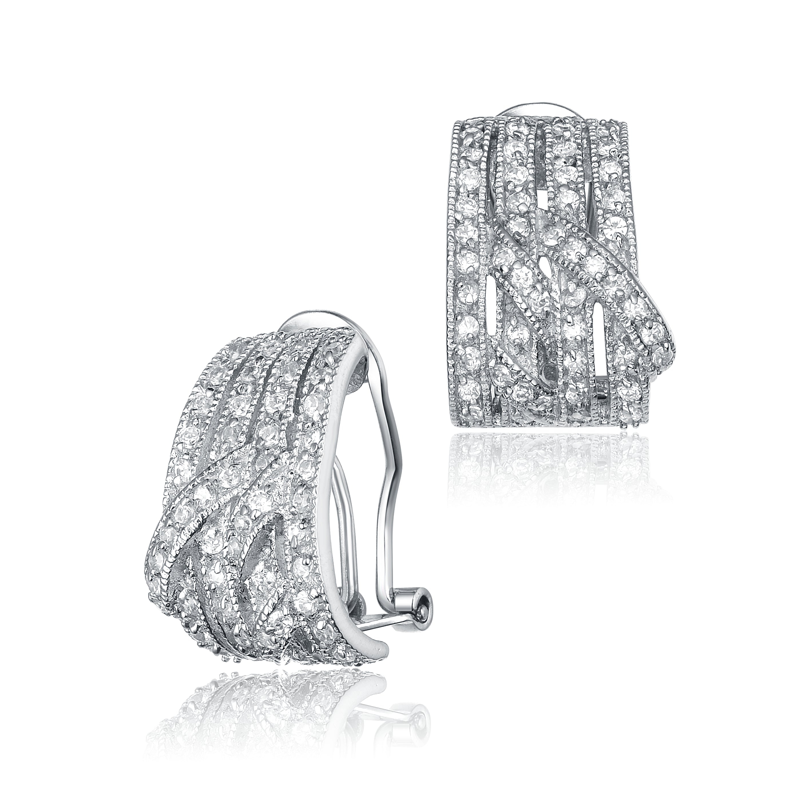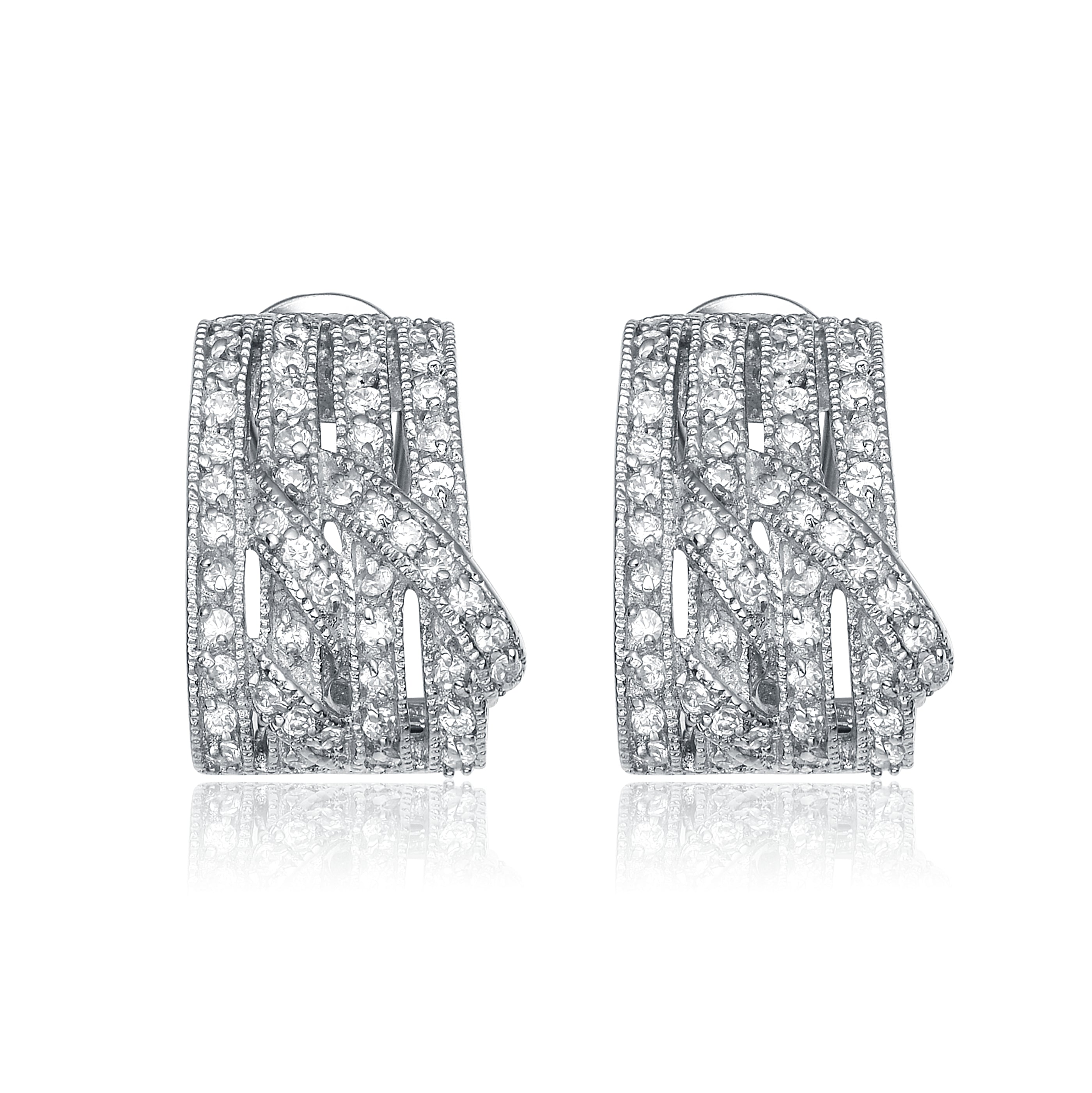 Four columns of clear cubic zirconia stones along with an asymmetrical one make up the soul of these sterling silver earrings. They’re great for evenings out.