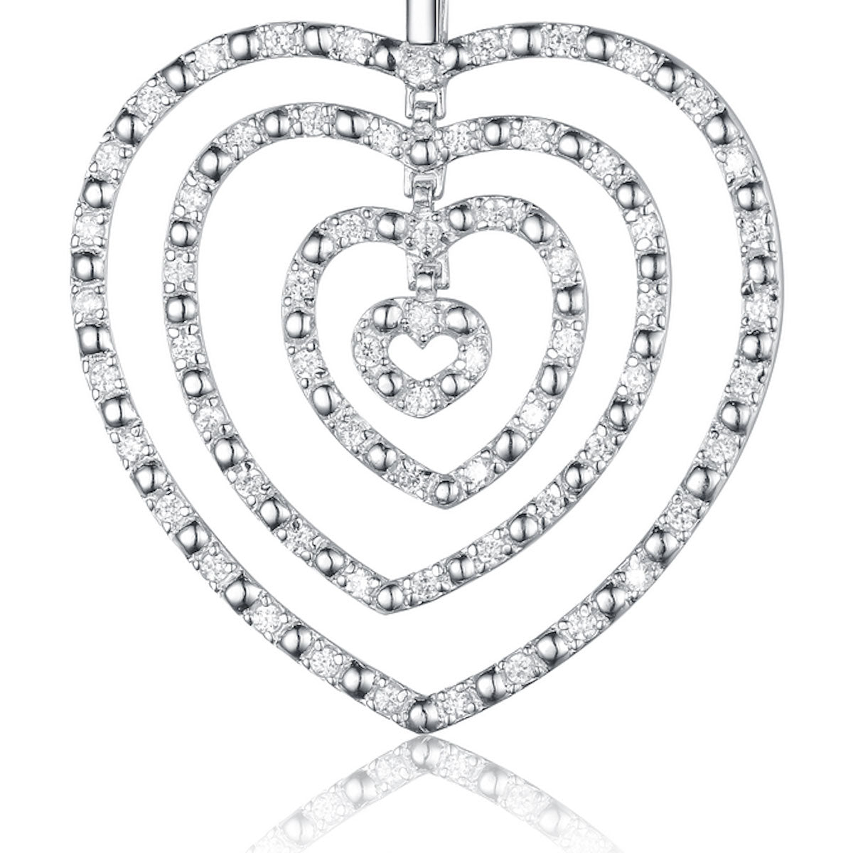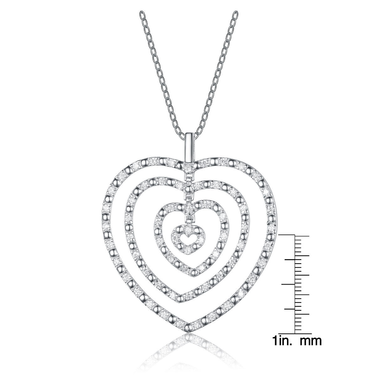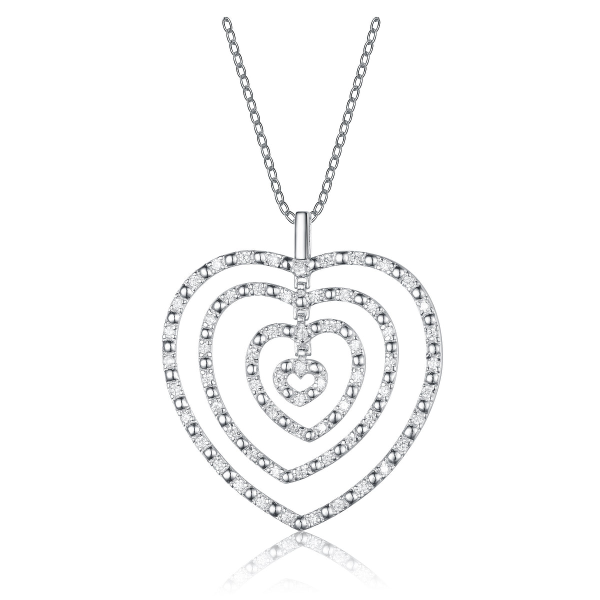 Prepare to be mesmerized by this sterling silver necklace that uses four heart shaped rings of clear cubic zirconias. This necklace makes a great gift that is sure to please.
