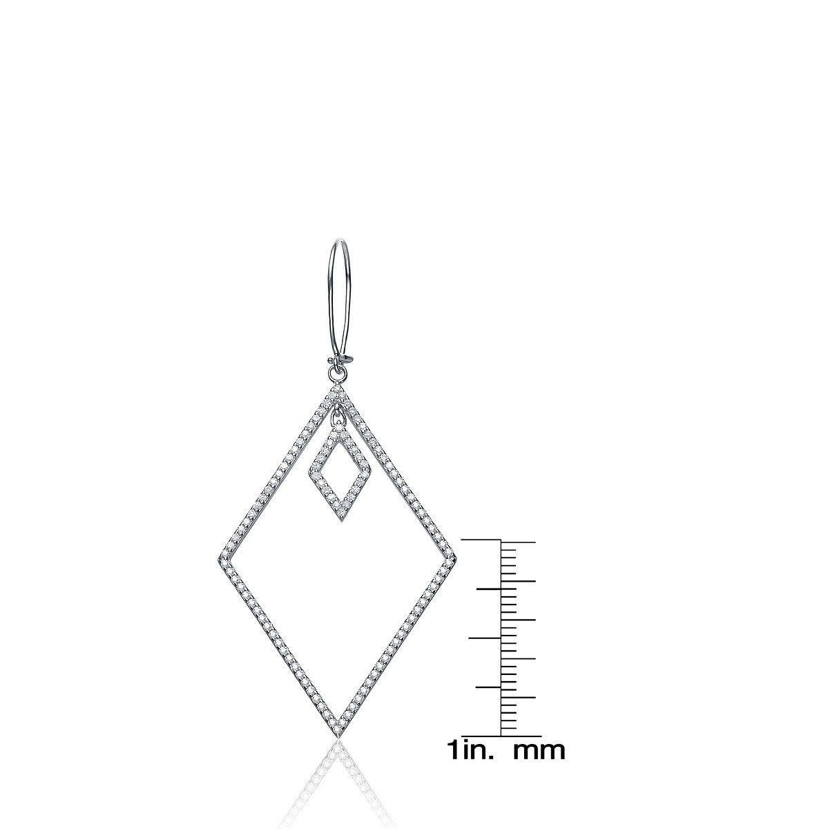 These sterling silver geometical dangle earrings are great for both day time and nightime looks. The clear cubic zirconia stones are sure to sparkle and shine in any light.