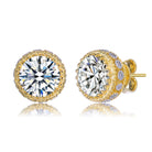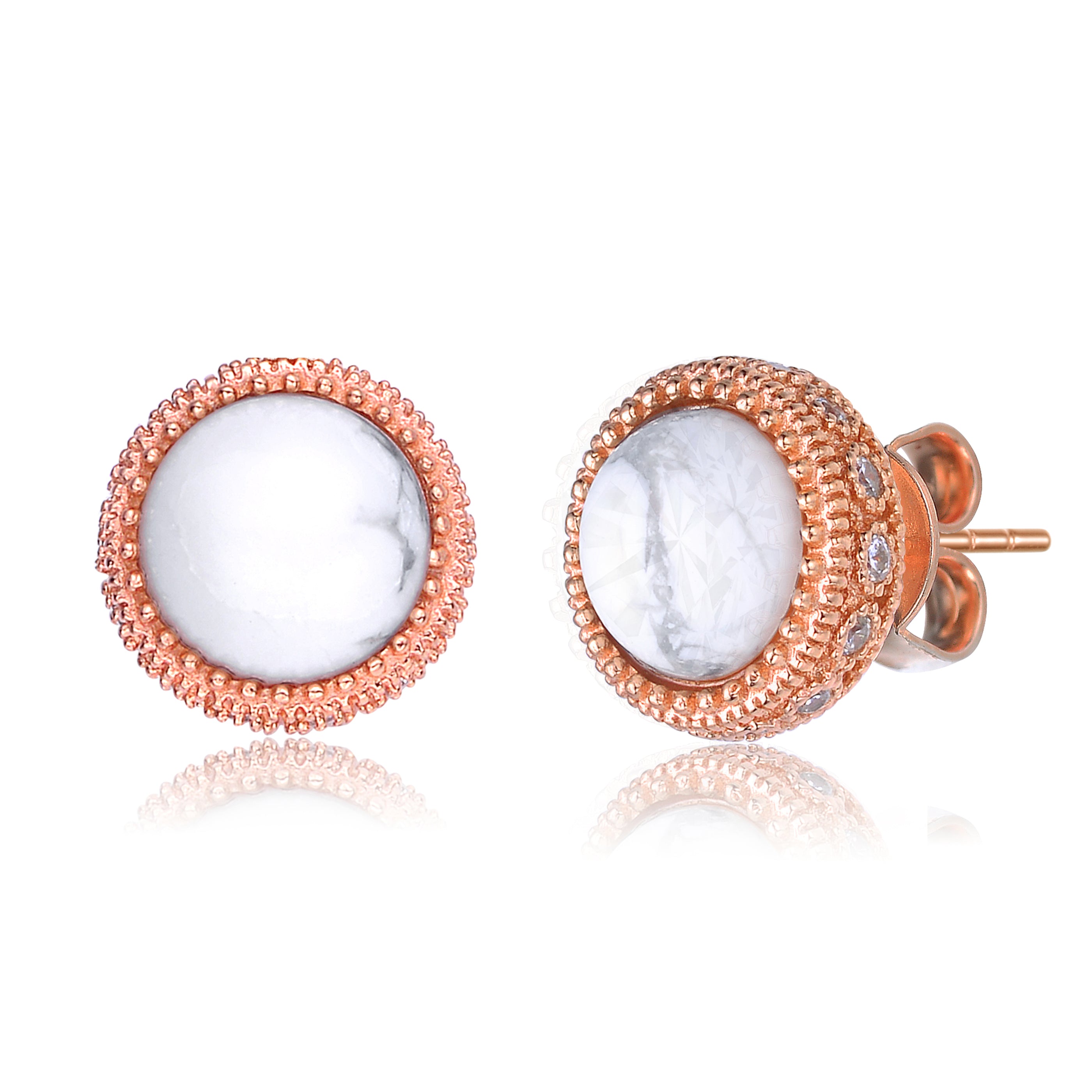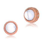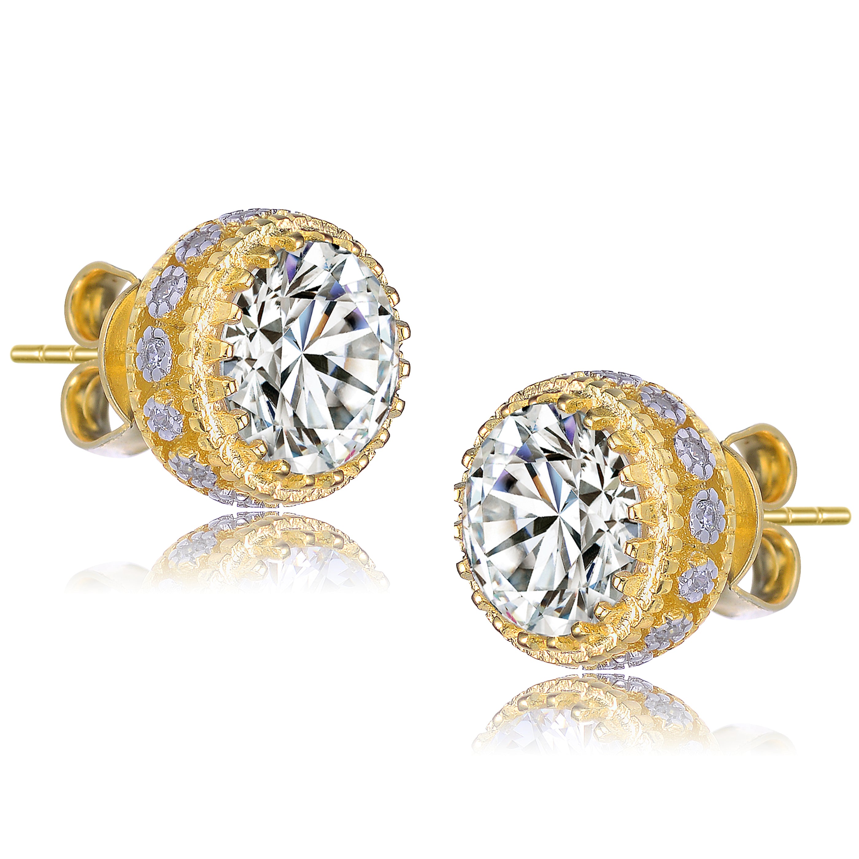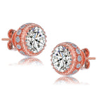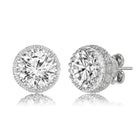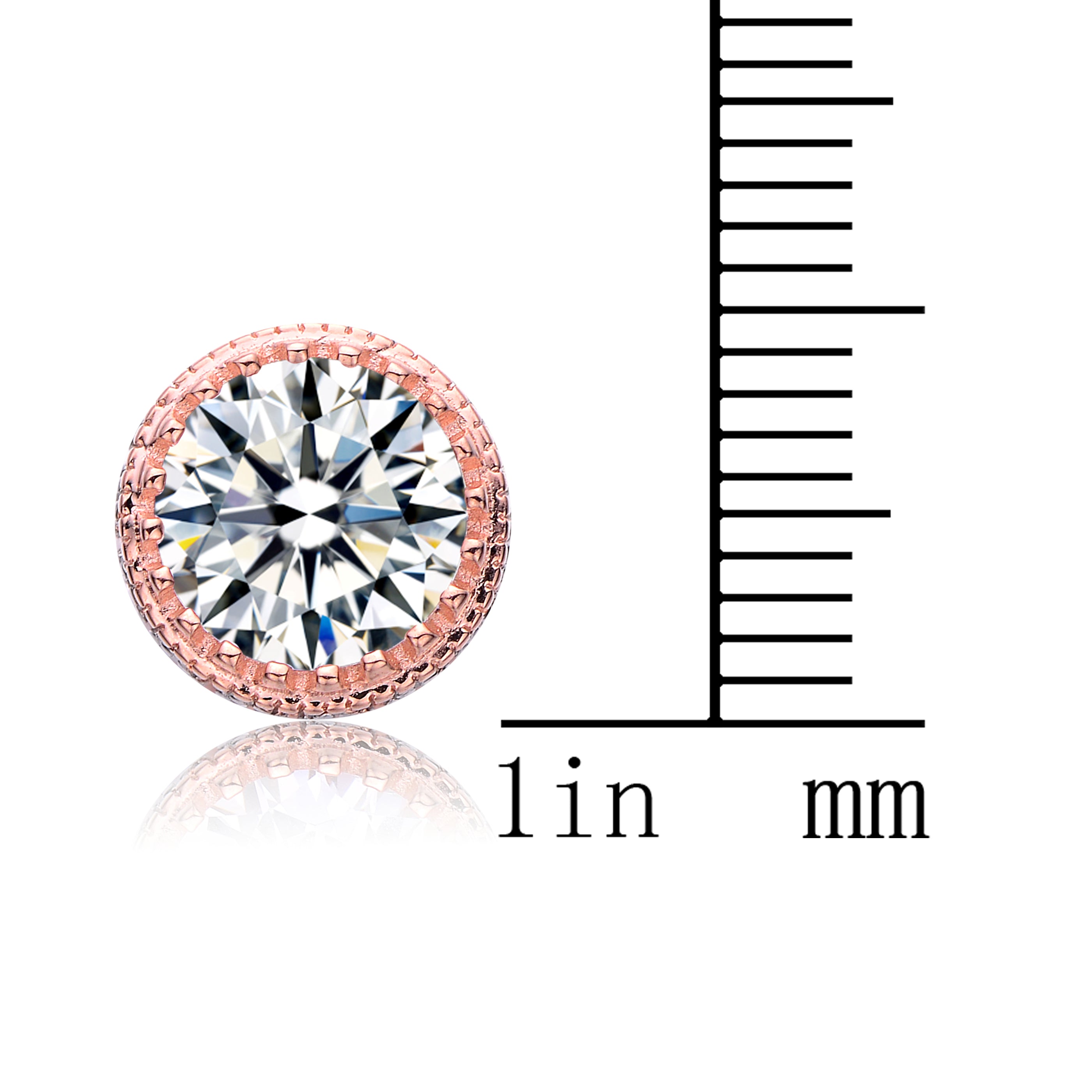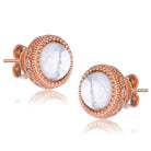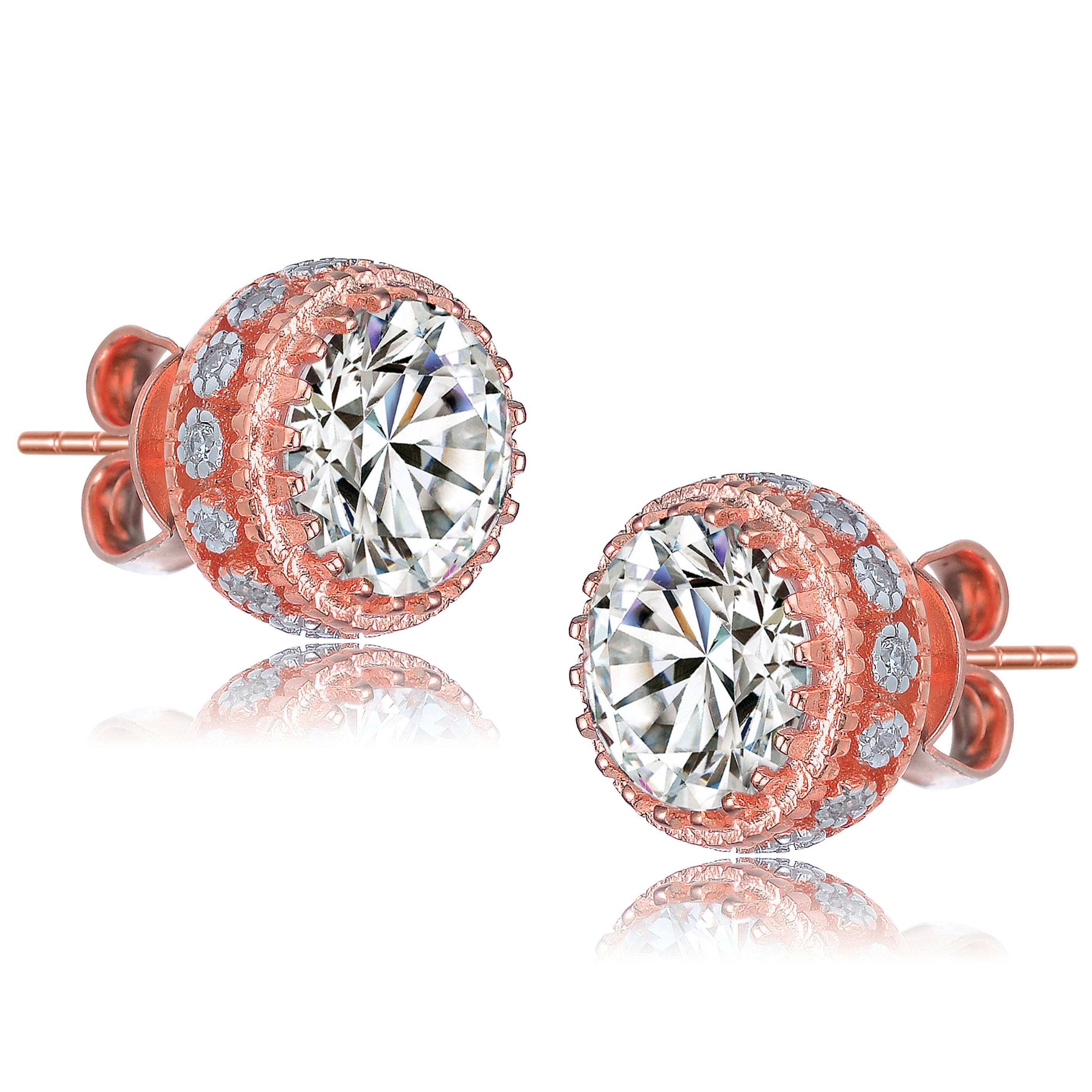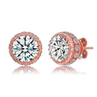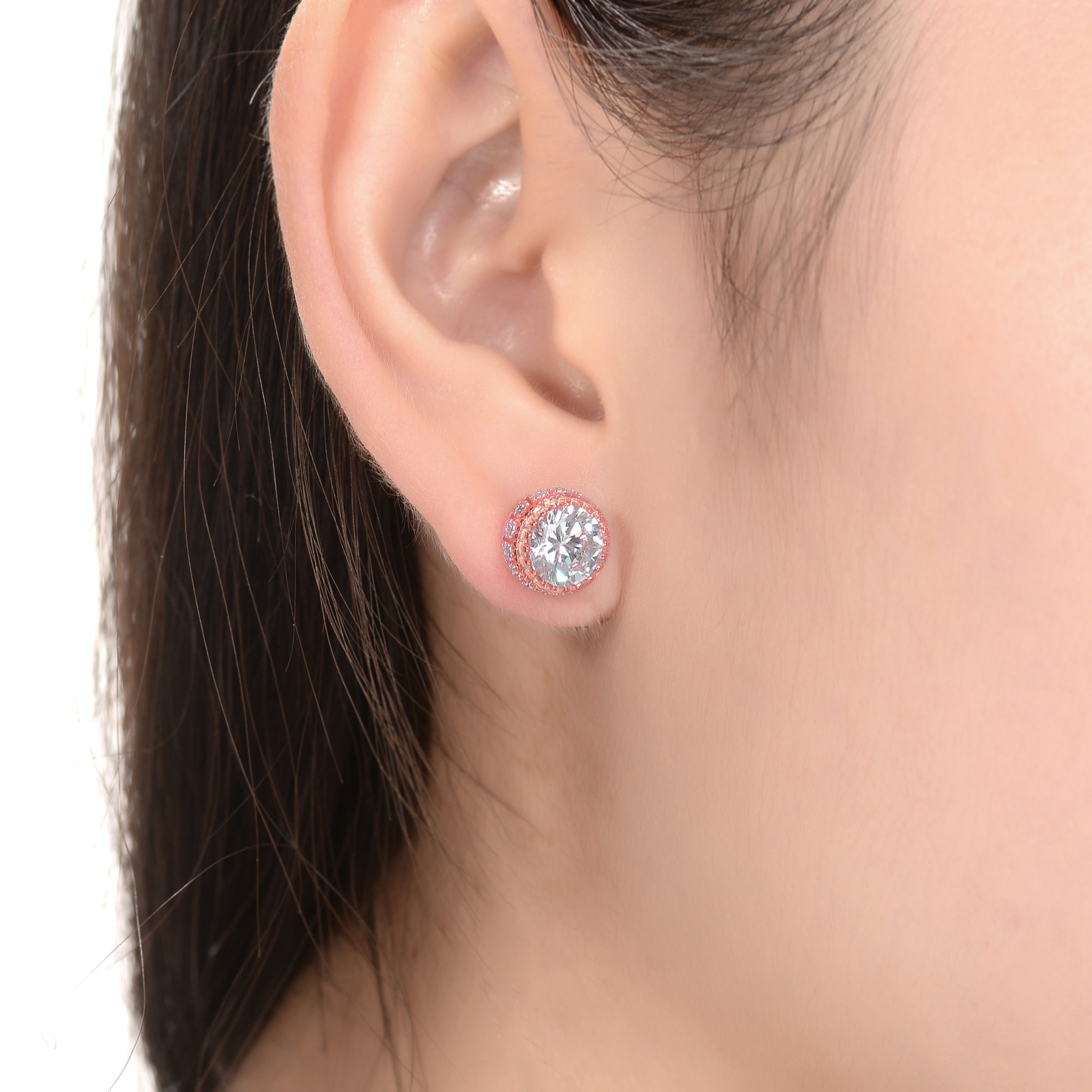 Add some pizazz to your collection with these gleaming white stud earrings. Each piece features a sparkling white cubic zirconia stone surrounded by rose solitaires. Also available in Rhodium and Gold platting.