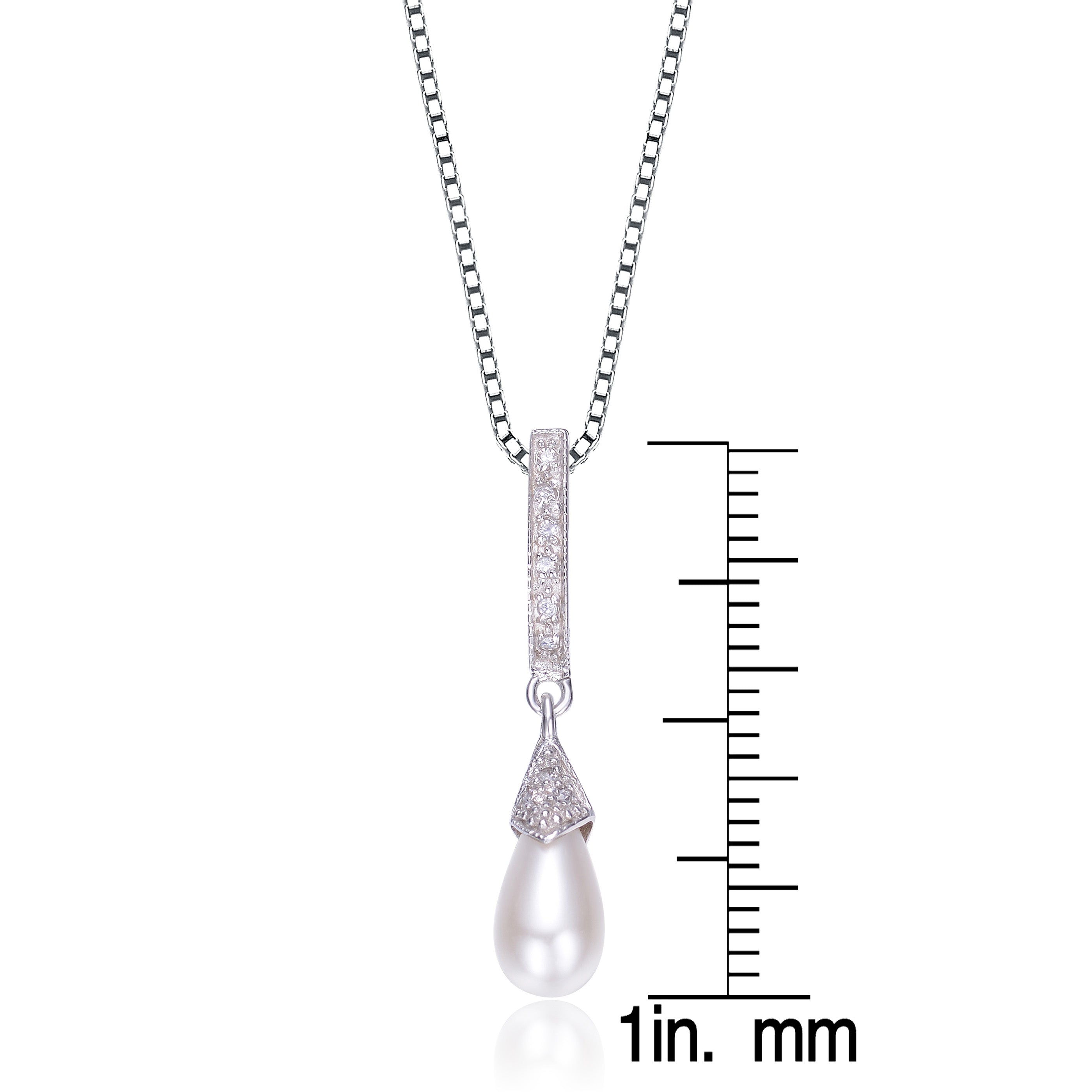 Sterling Silver Cubic Zirconia Gold Plating Clear and Cultured Pearl Dangling Pendant Necklace