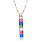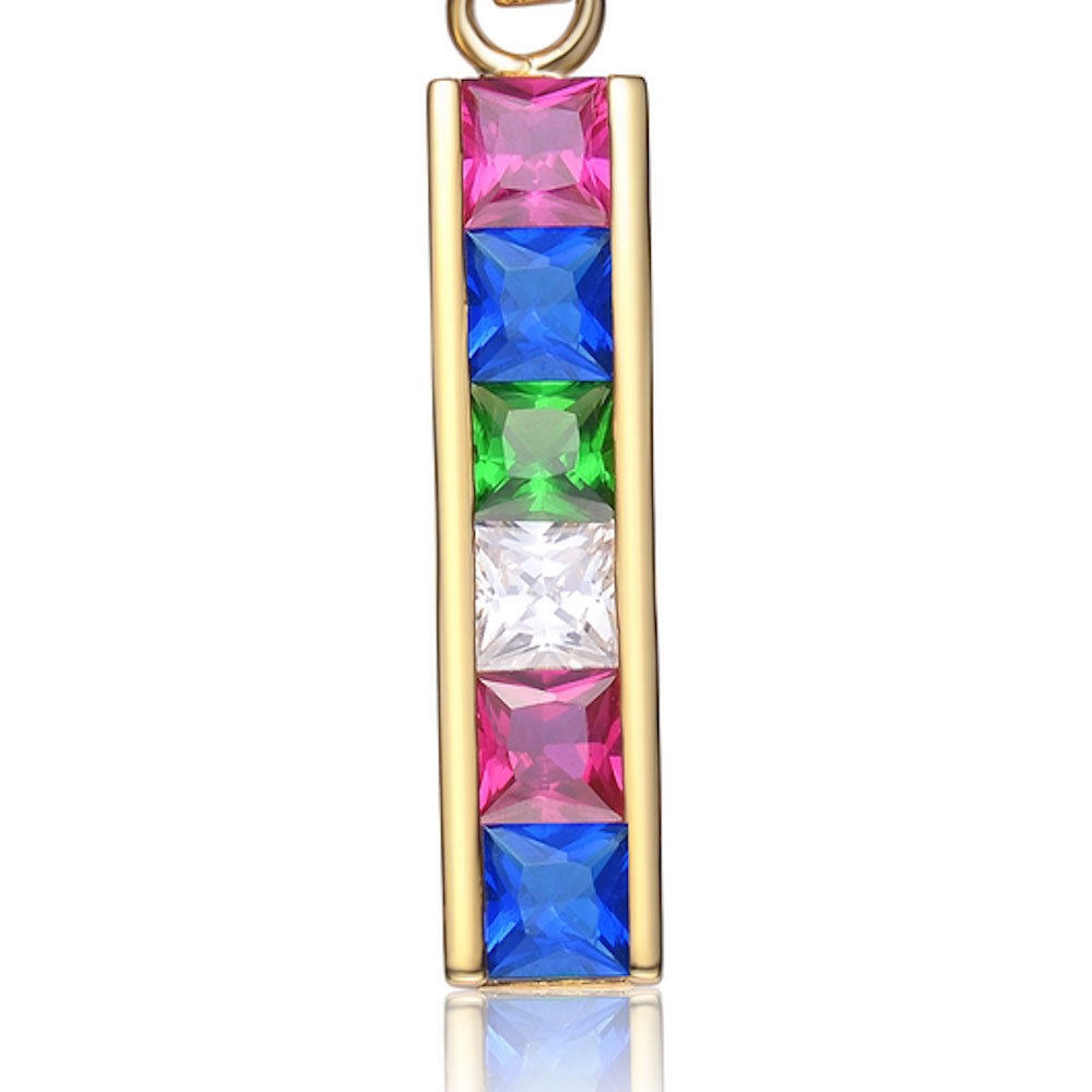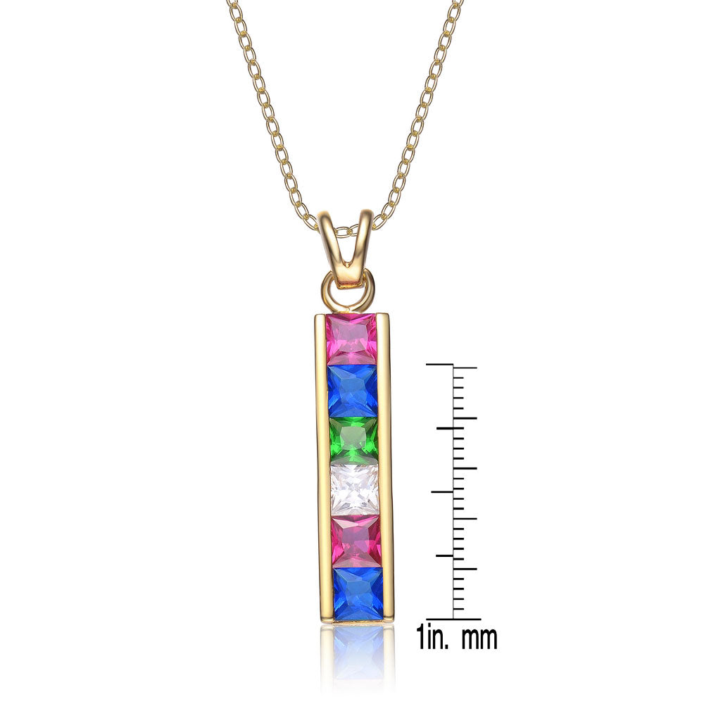 Sterling Silver Cubic Zirconia Gold Plating Clear and Pink Blue White and Green Cubic Zirconia Dangling Pendant Necklace