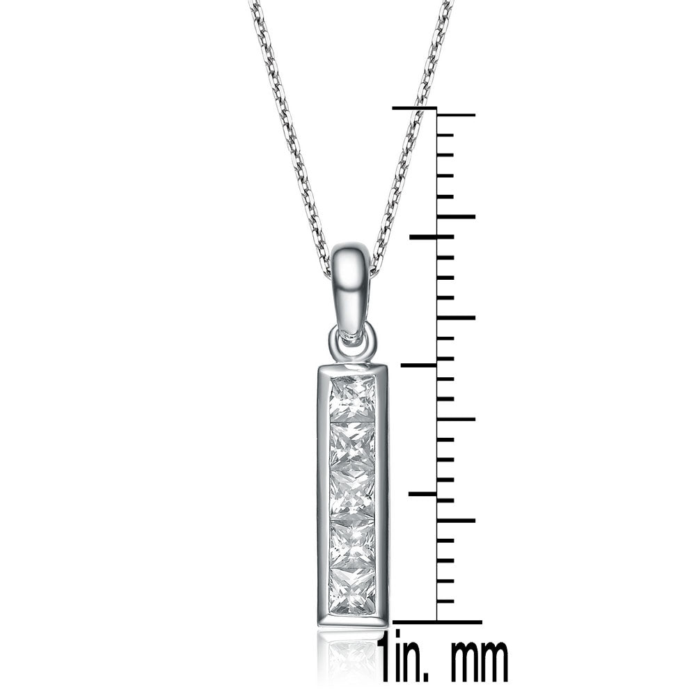 A rectangle frame made from sterling silver and filled with clear cubic zirconia stones is the focus of this necklace. It is multi-functioning and can be worn with daytime and evening looks.