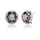 A cluster of clear and black cubic zirconia stones form the shape of a star at the center of these sterling silver earrings. These knobs are great for day and night.
