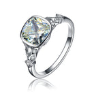 A large clear cubic zirconia stone sits at the core of this sterling silver ring and is surrounded by smaller cubic zirconias. This ring is a staple for any collection.