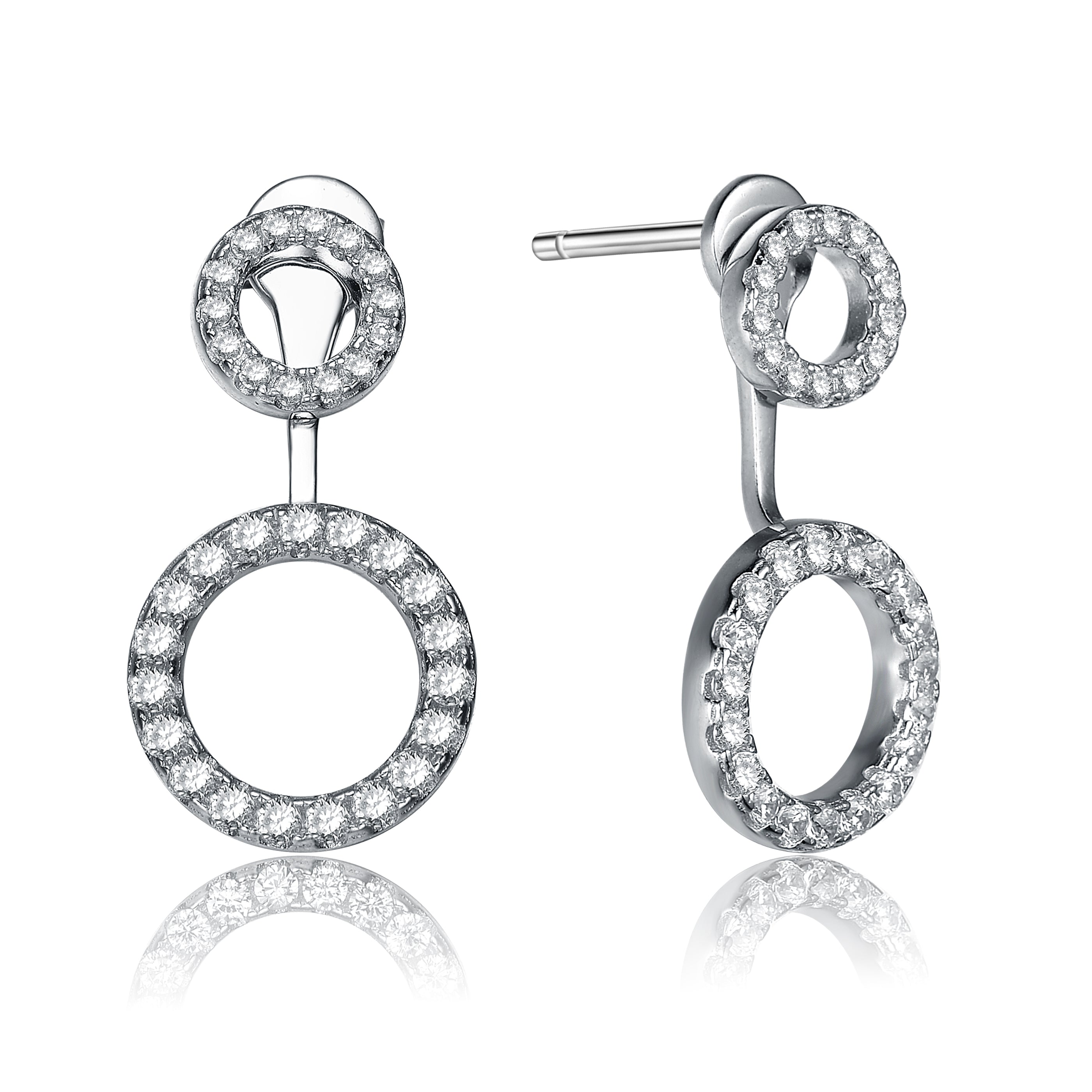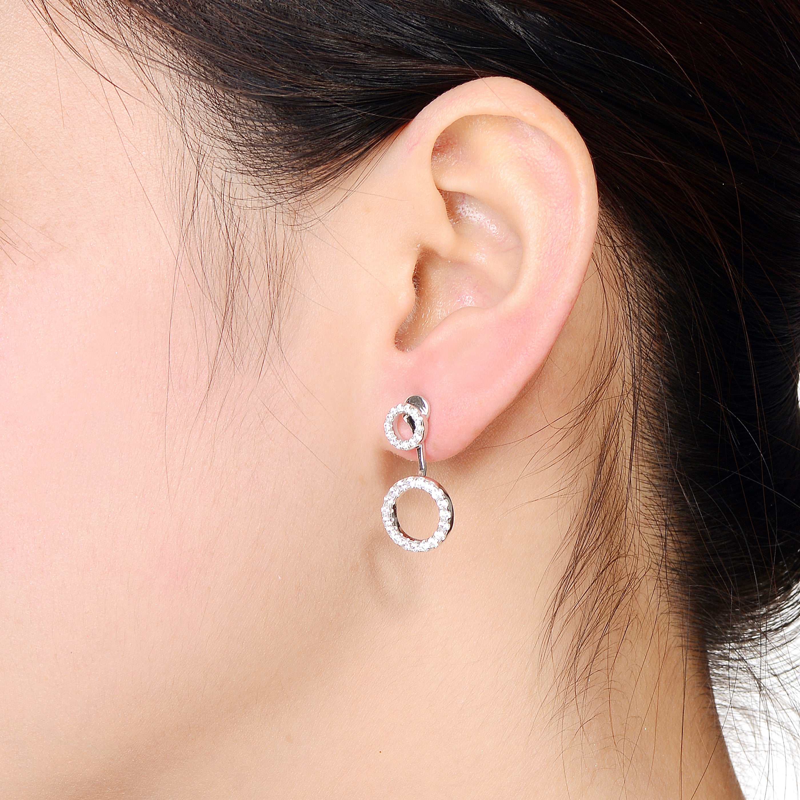 No need to keep searching for the perfect pair of earrings. These sterling silver ear jacket earrings use clear cubic zirconia stones to form two open circles and are just right.
