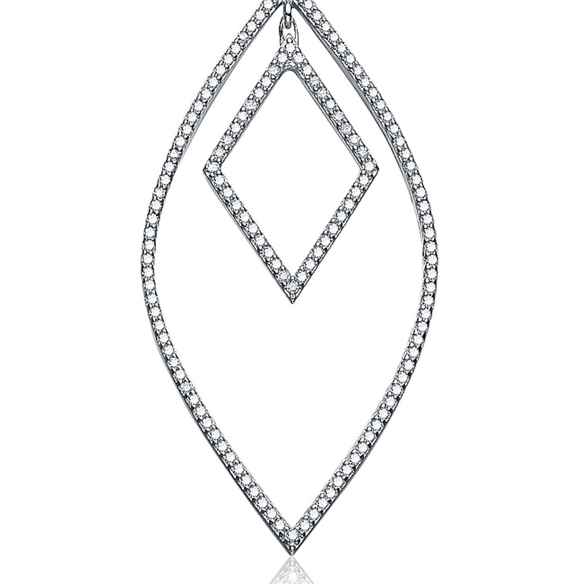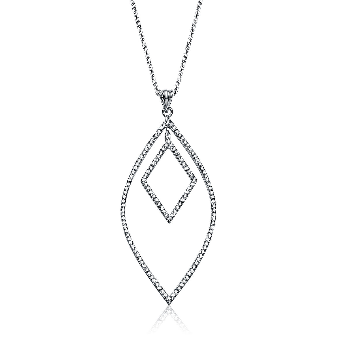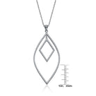 A simple open leaf shape made from clear cubic zirconia stones is used in this sterling silver necklace. A smaller shaped pendant is also used to create a layered look.