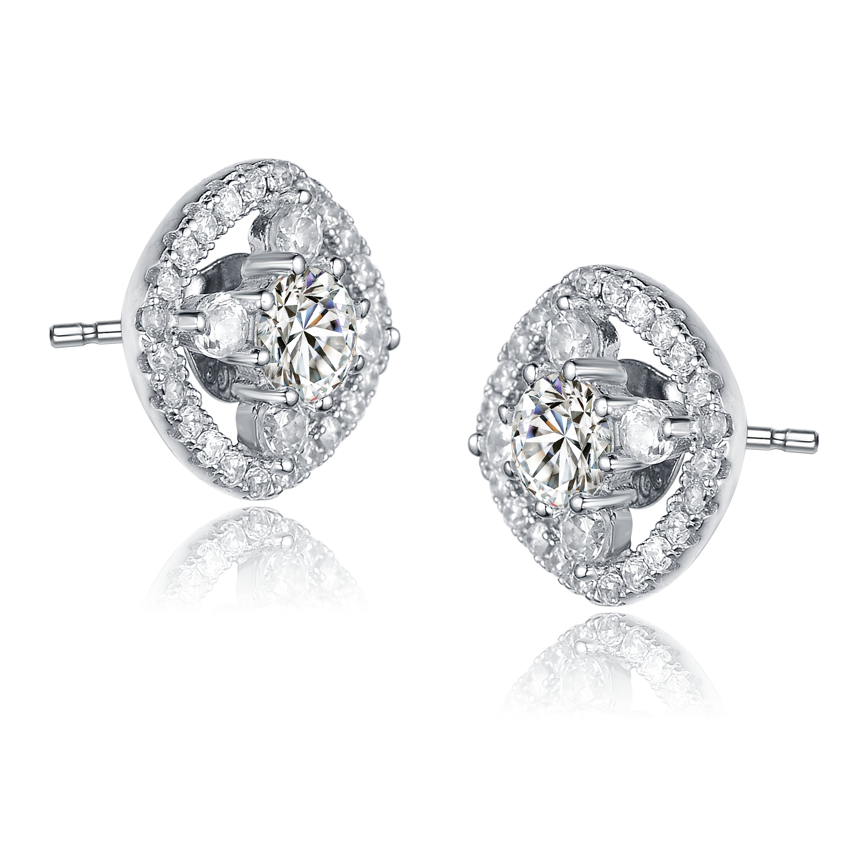 Sterling Silver Cubic Zirconia Open Shape Knob Earrings