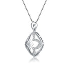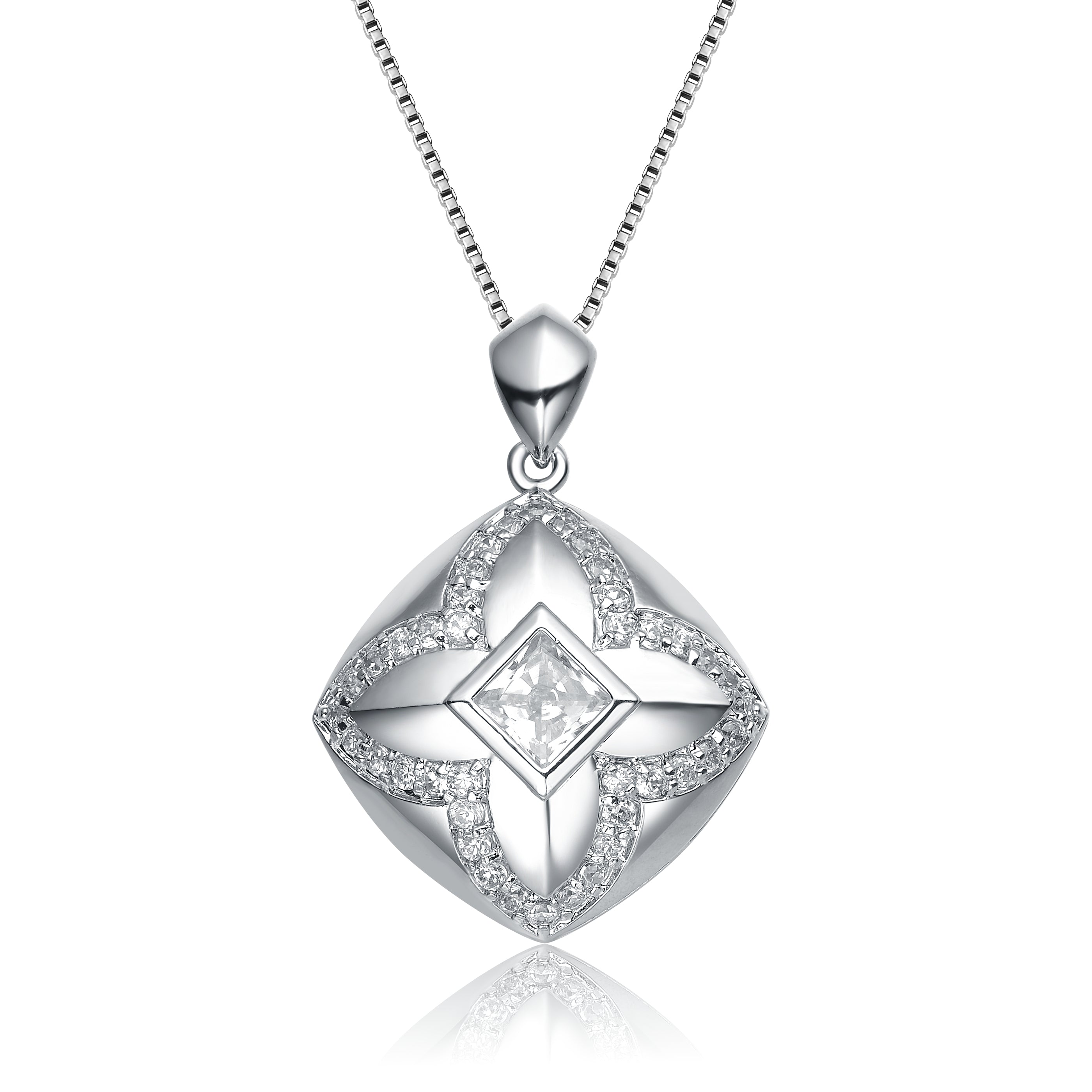 This sterling silver necklace will capture your heart. It features clear cubic zirconia stones and an open cross shape at the center.