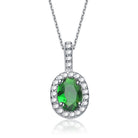 Sterling Silver Cubic Zirconia Green Cubic Zirconia Oval Necklace