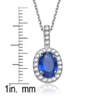 This necklace is a dainty and elegant piece of jewelry that features an oval-cut cubic zirconia stone in your choice of blue or green. The stone is enhanced with smaller white round stones that create a sparkling border. The pendant and chain are crafted of rhodium plated .925 sterling silver, giving it a shiny and durable finish. The necklace secures with a spring ring clasp for a comfortable and secure fit. This necklace is simple and chic, perfect for any occasion.