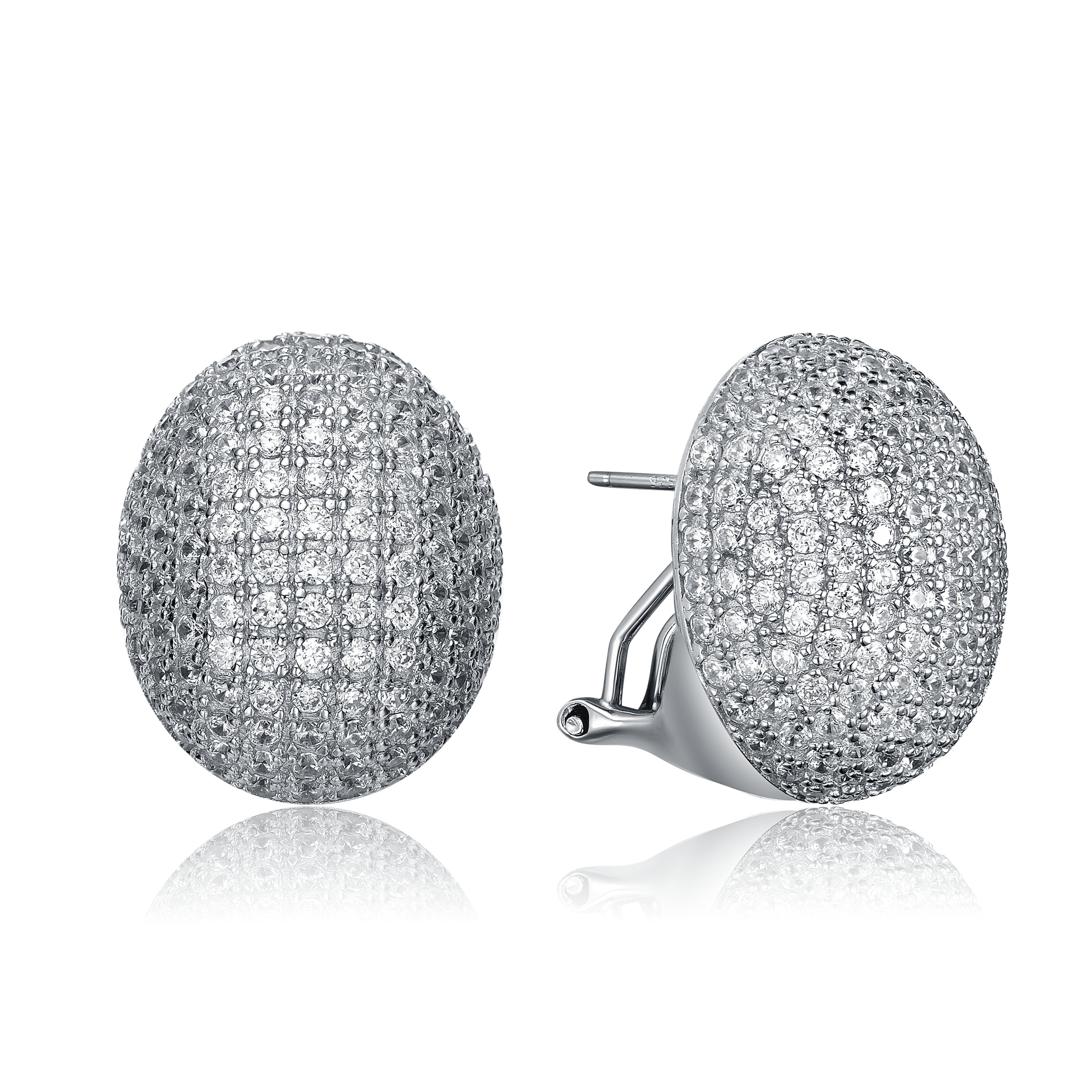 Looking for a cut pair of earring for that jewelry collection? Try this sterling silver set with pave clear cubic zirconia stones in the shape of an oval.
