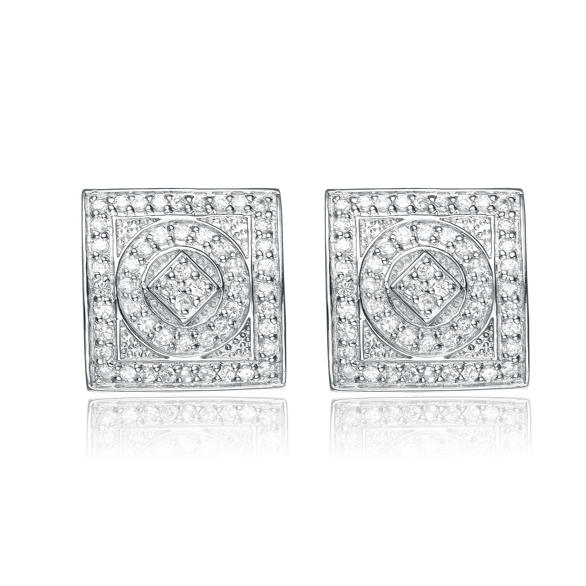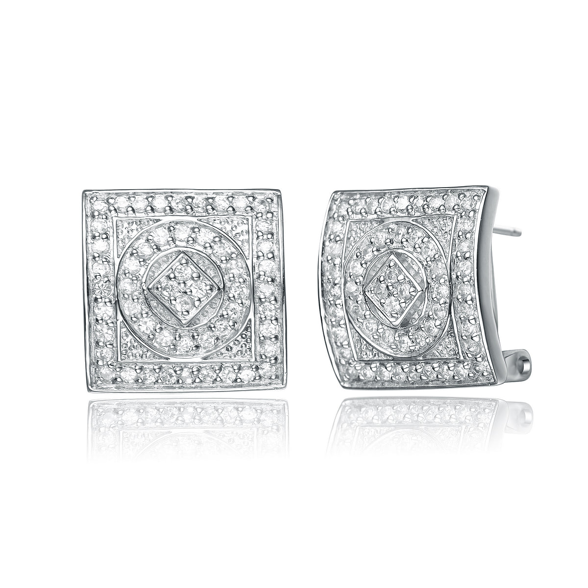 These alluring sterling silver earrings are great for an evening out or for a gift to someone special. Clear cubic zirconia stones form a square and make this a dazzling pair of button earrings.