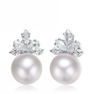 A single faux white pearl adorns each of these eye-catching stud earrings, crowned by marquise and round-cut clear cubic zirconia gemstones. The earrings are crafted of .925 sterling silver with highly polished White Gold plating.