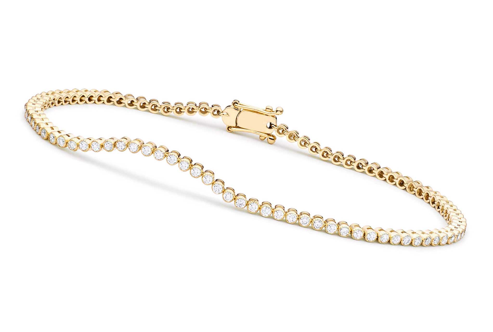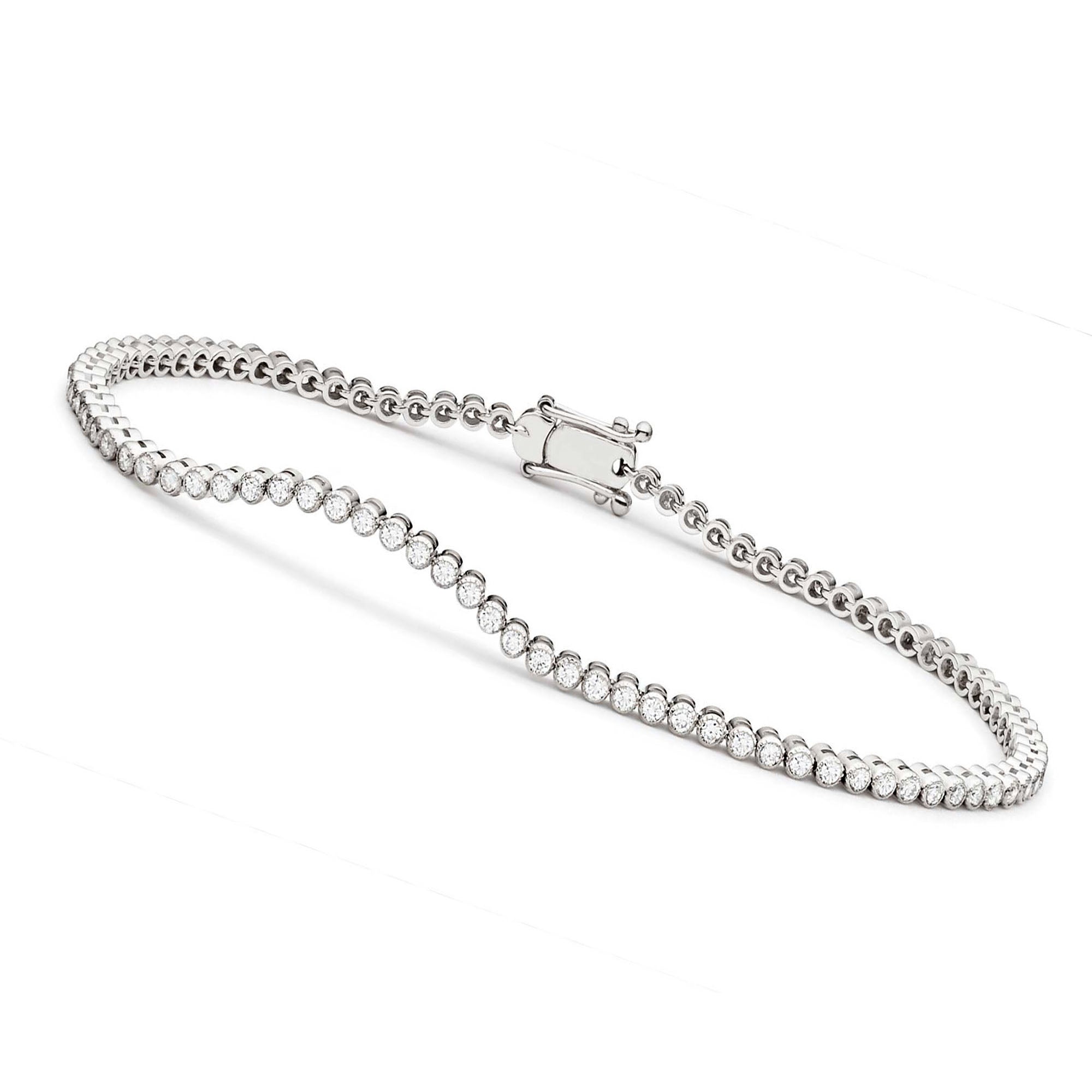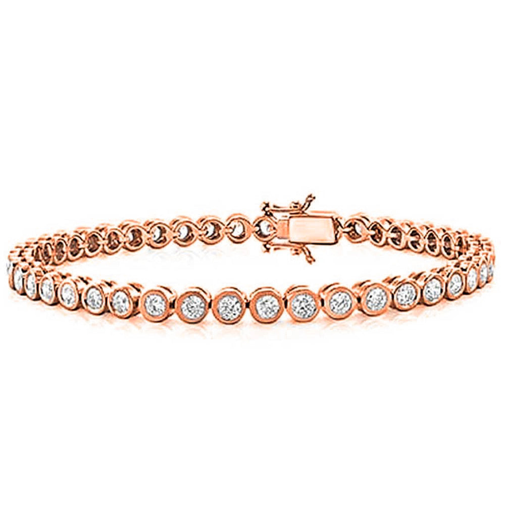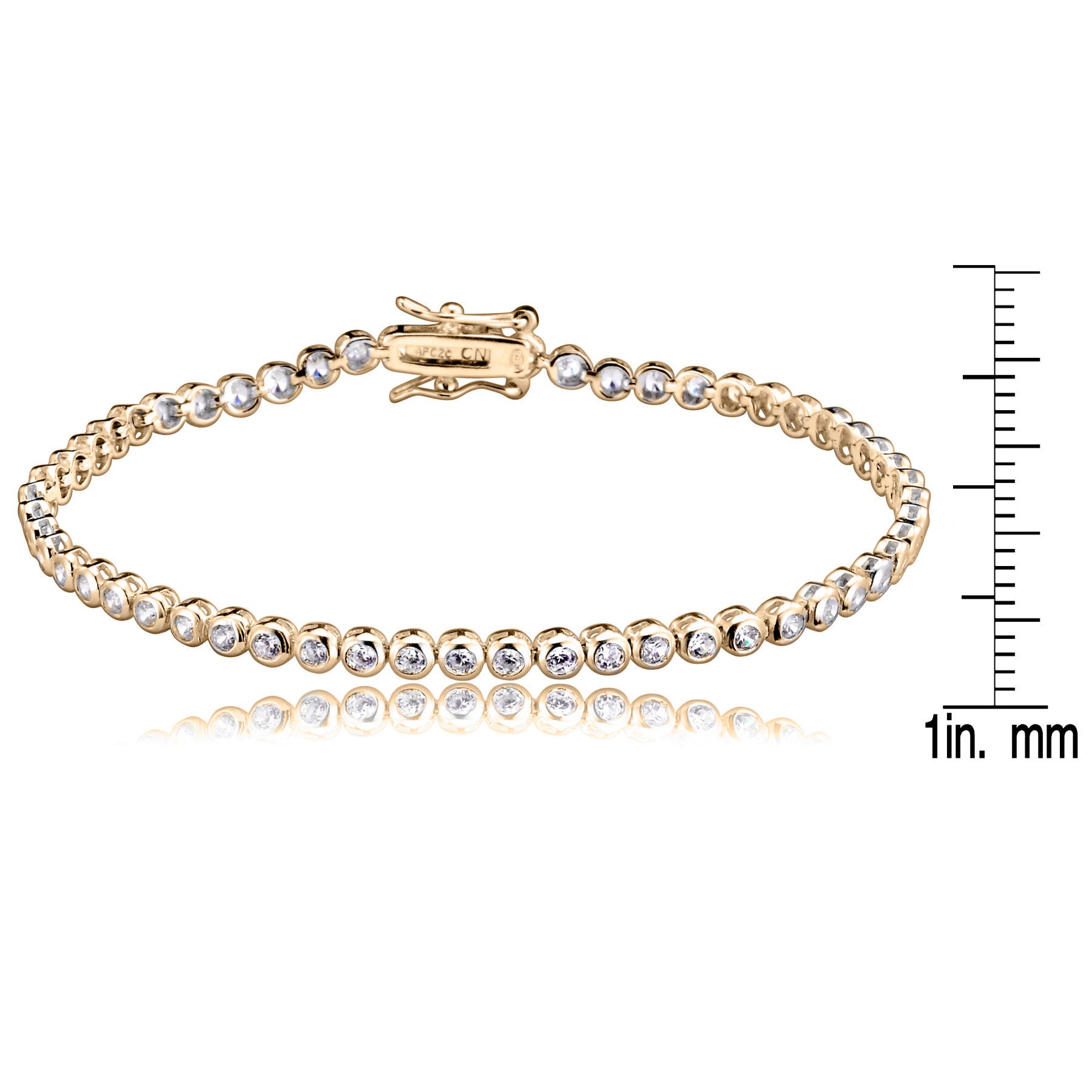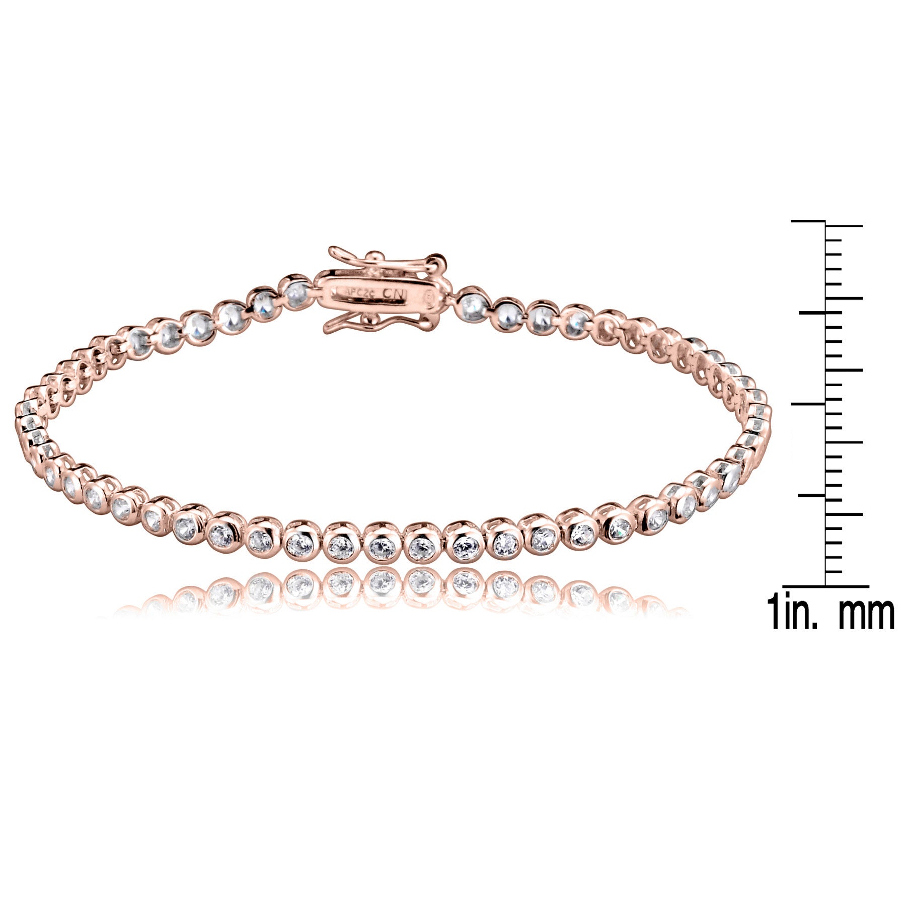 This classic bracelet features dazzling white round-cut cubic zirconia stones in bezel settings. Crafted of .925 sterling silver, the bracelet secures with a box clasp. Available in Gold and Rose Gold platings.