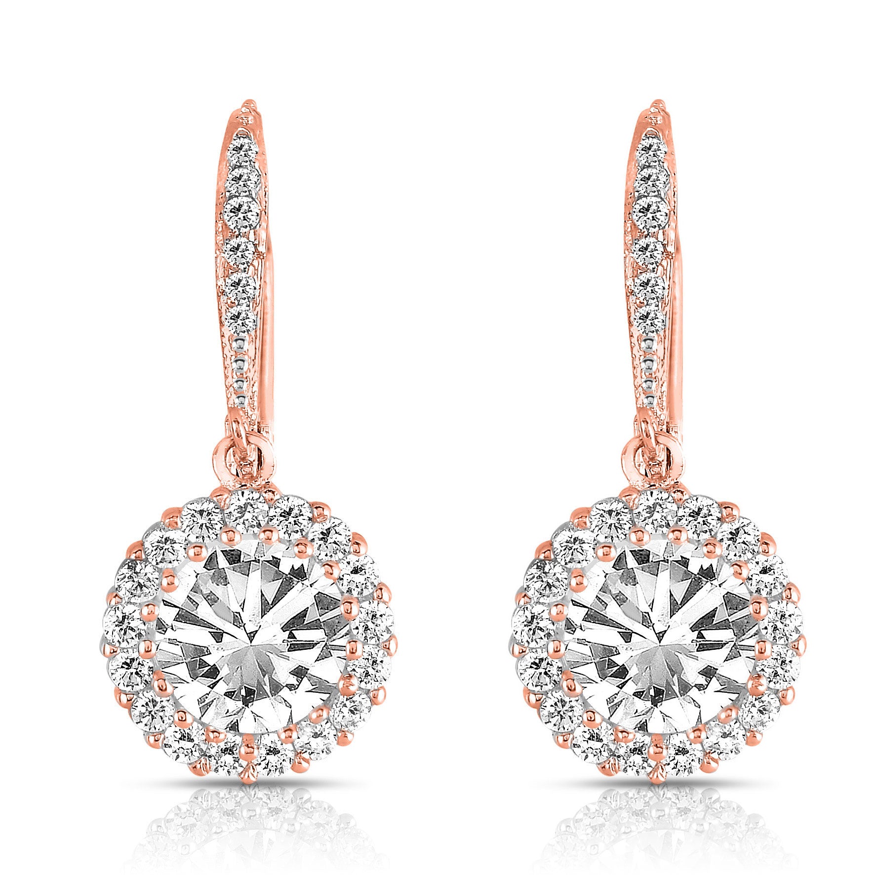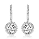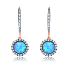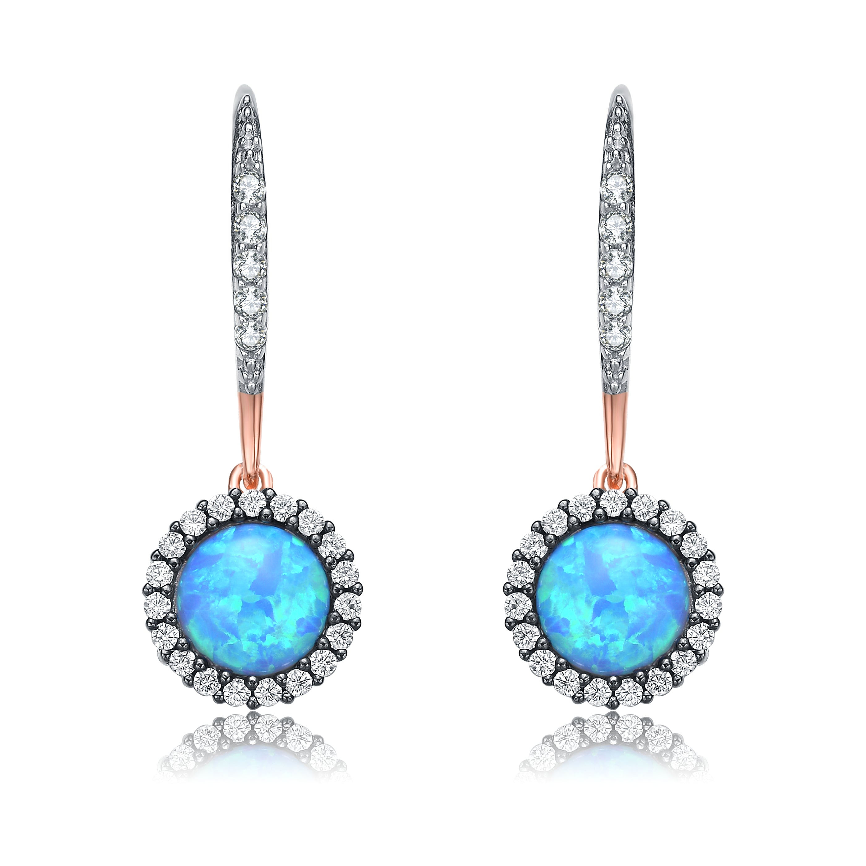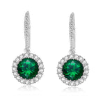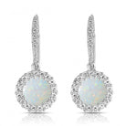 Sterling Silver Cubic Zirconia and Prong Dangle Earrings. These antique-style dangle earrings feature man-made rainbow white opals sparkling cubic zirconias prong set in halos and on these eloquent hoops, all beautifully crafted in sterling silver with lever backs for added movement. available in rhodium plattin, gold platting, rhodium platting with Emrald cubic zirconia or white opal.