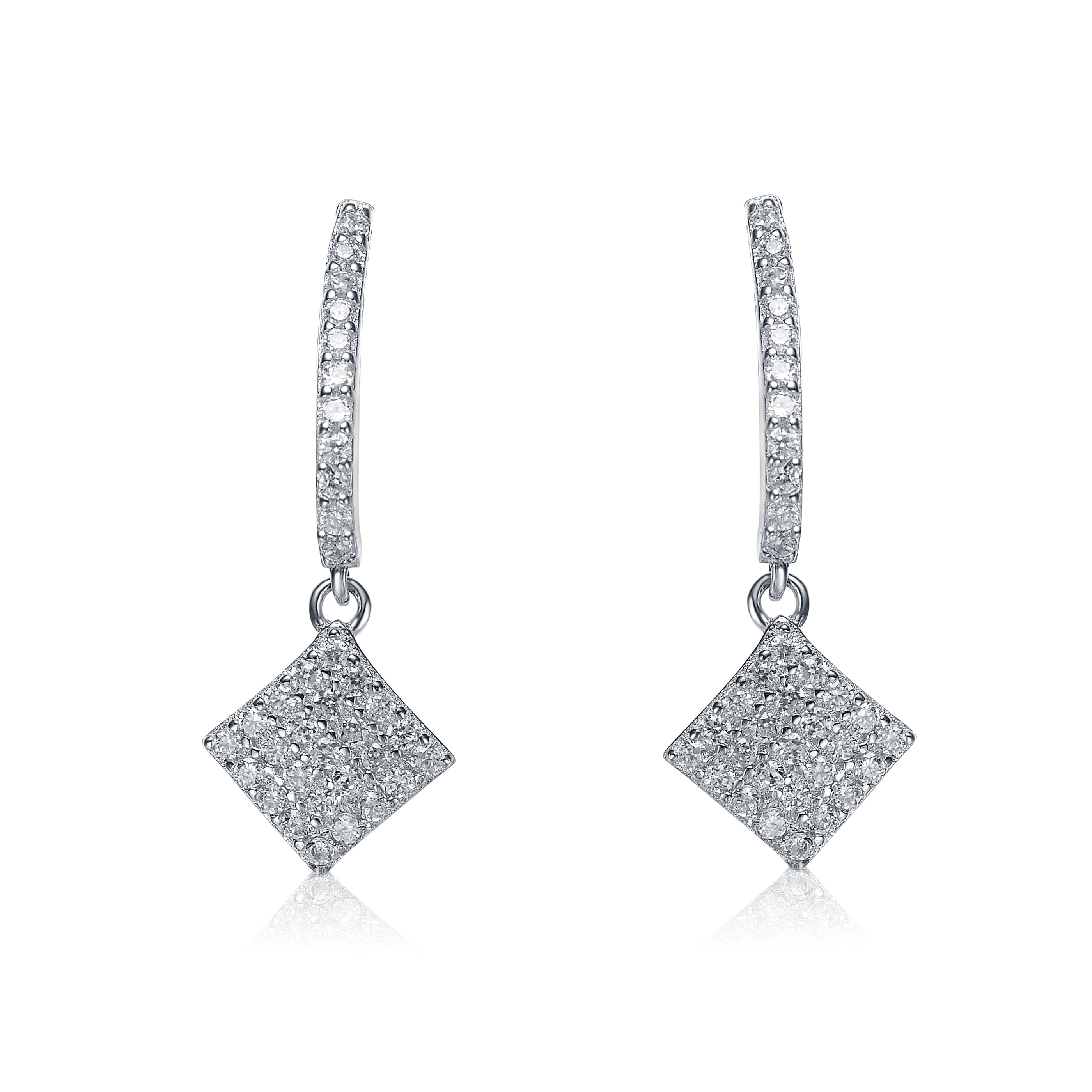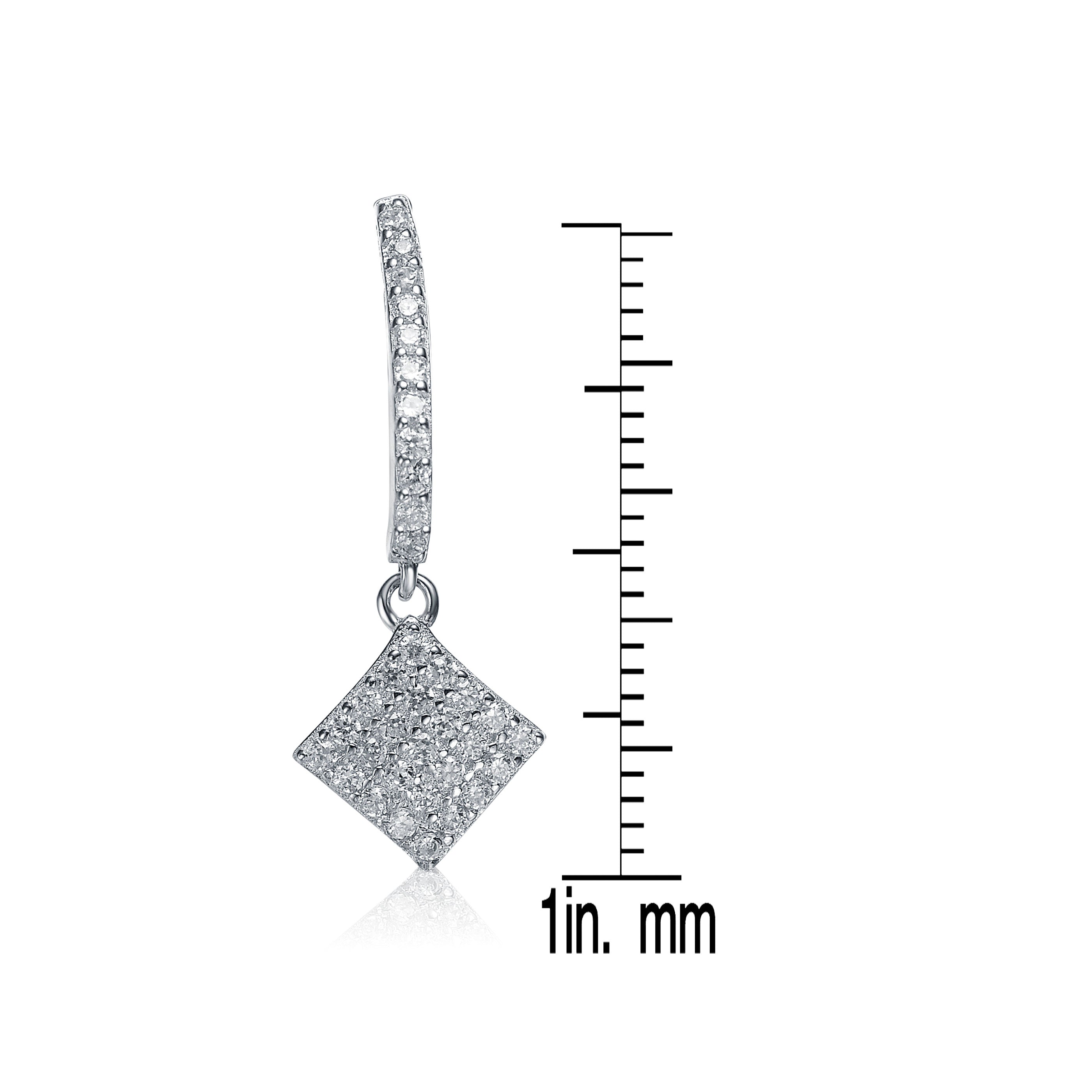 Dressing up that outfit will be easy with these sterling silver earrings. A trail of clear cubic zirconia stones lead to a pave cubic zirconias arranged in a shape.