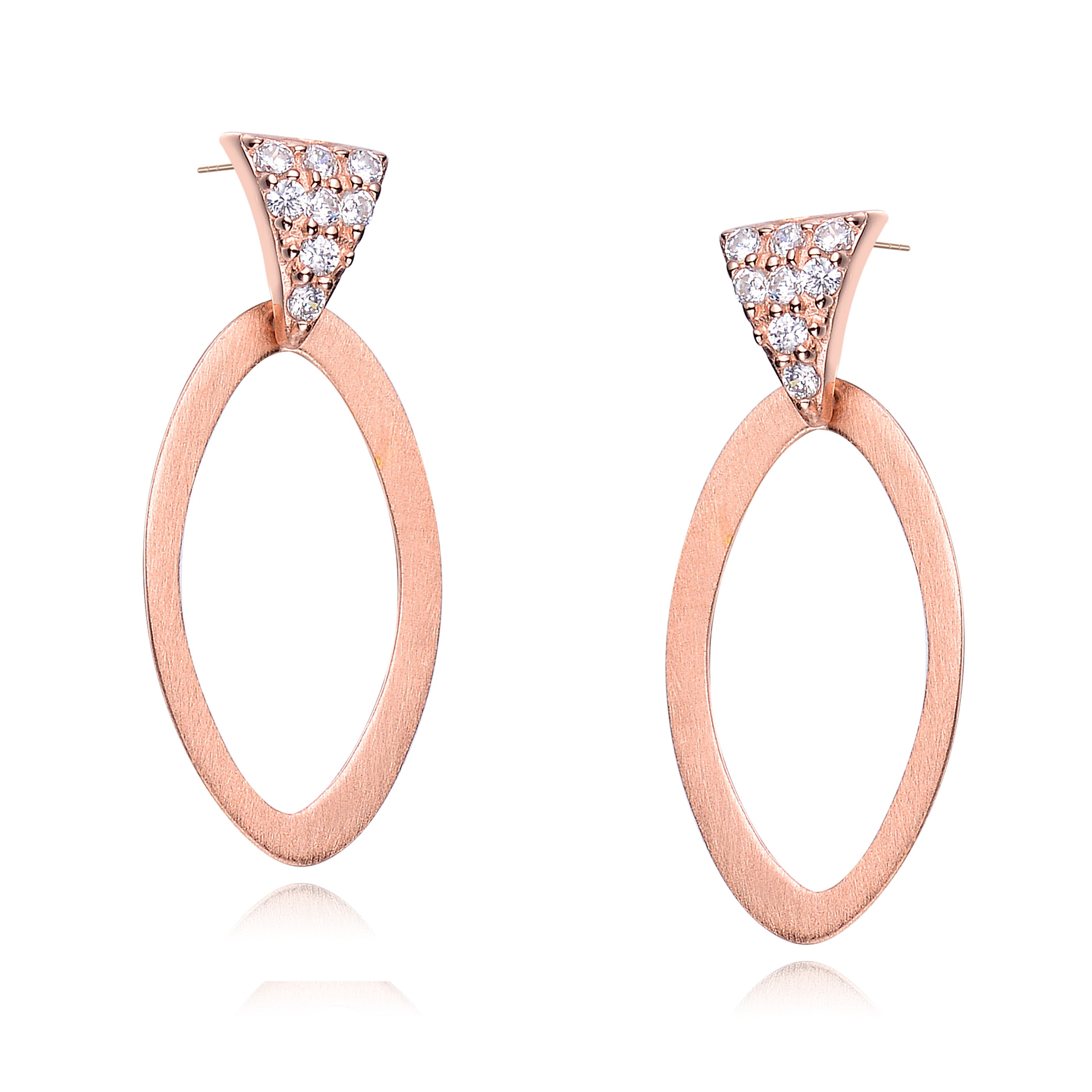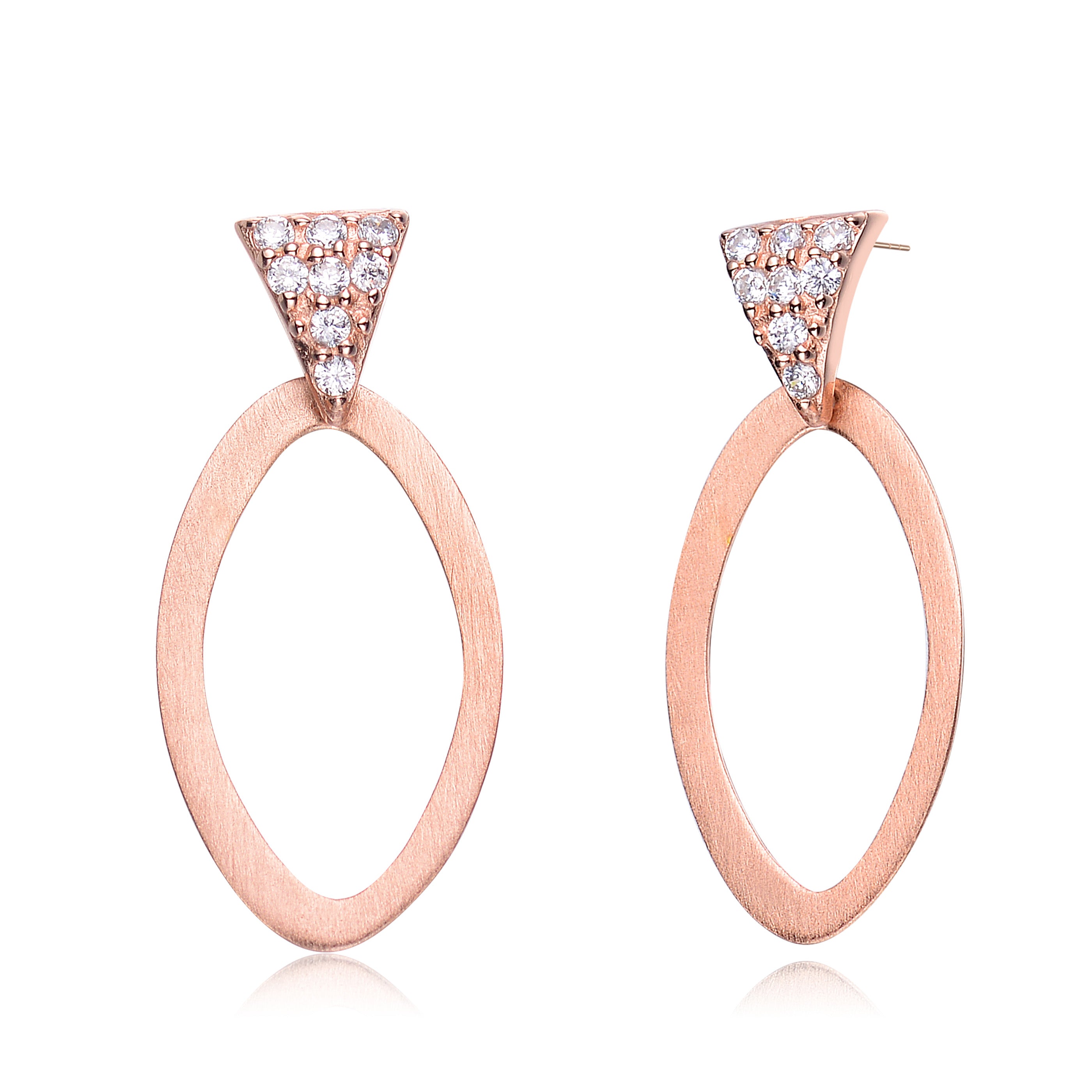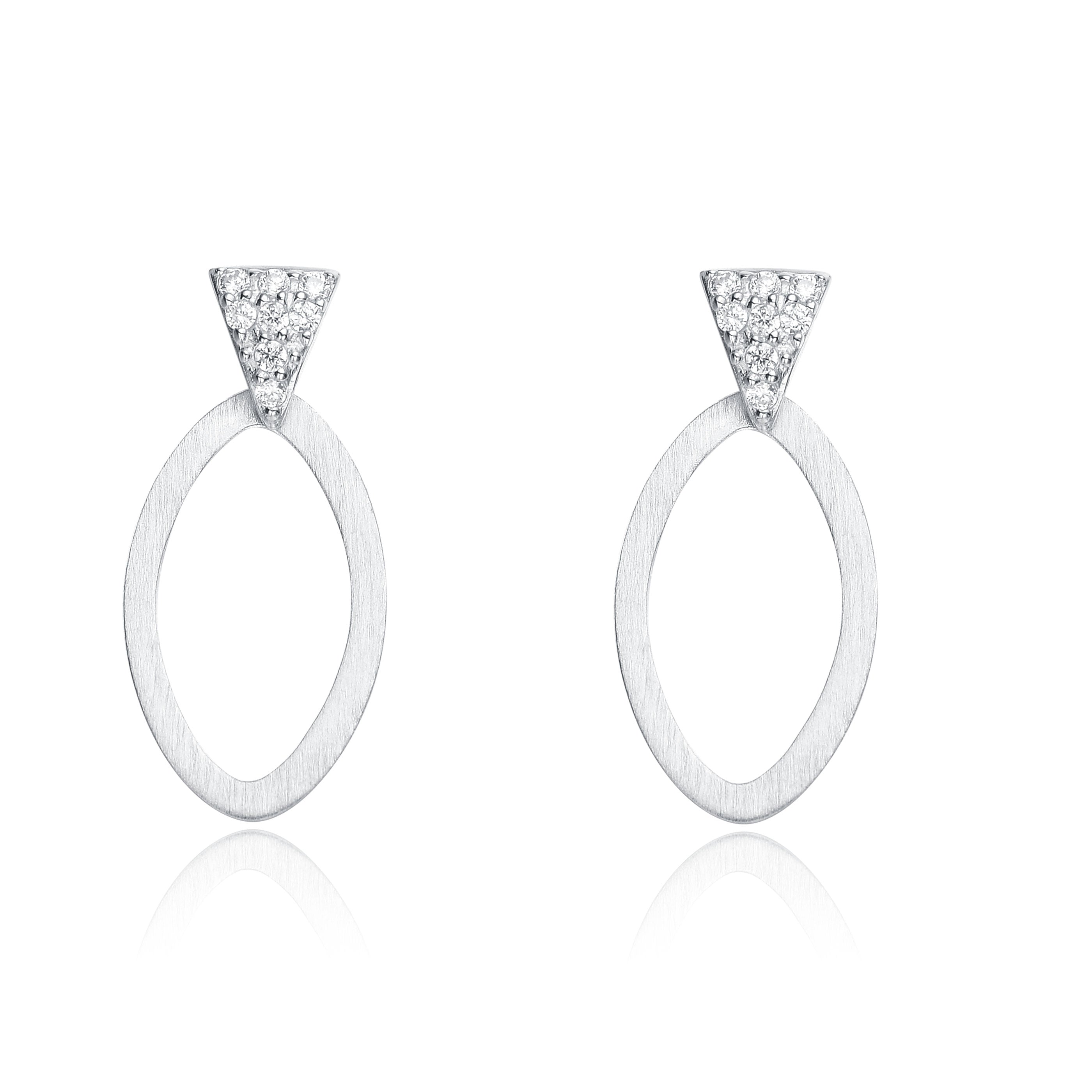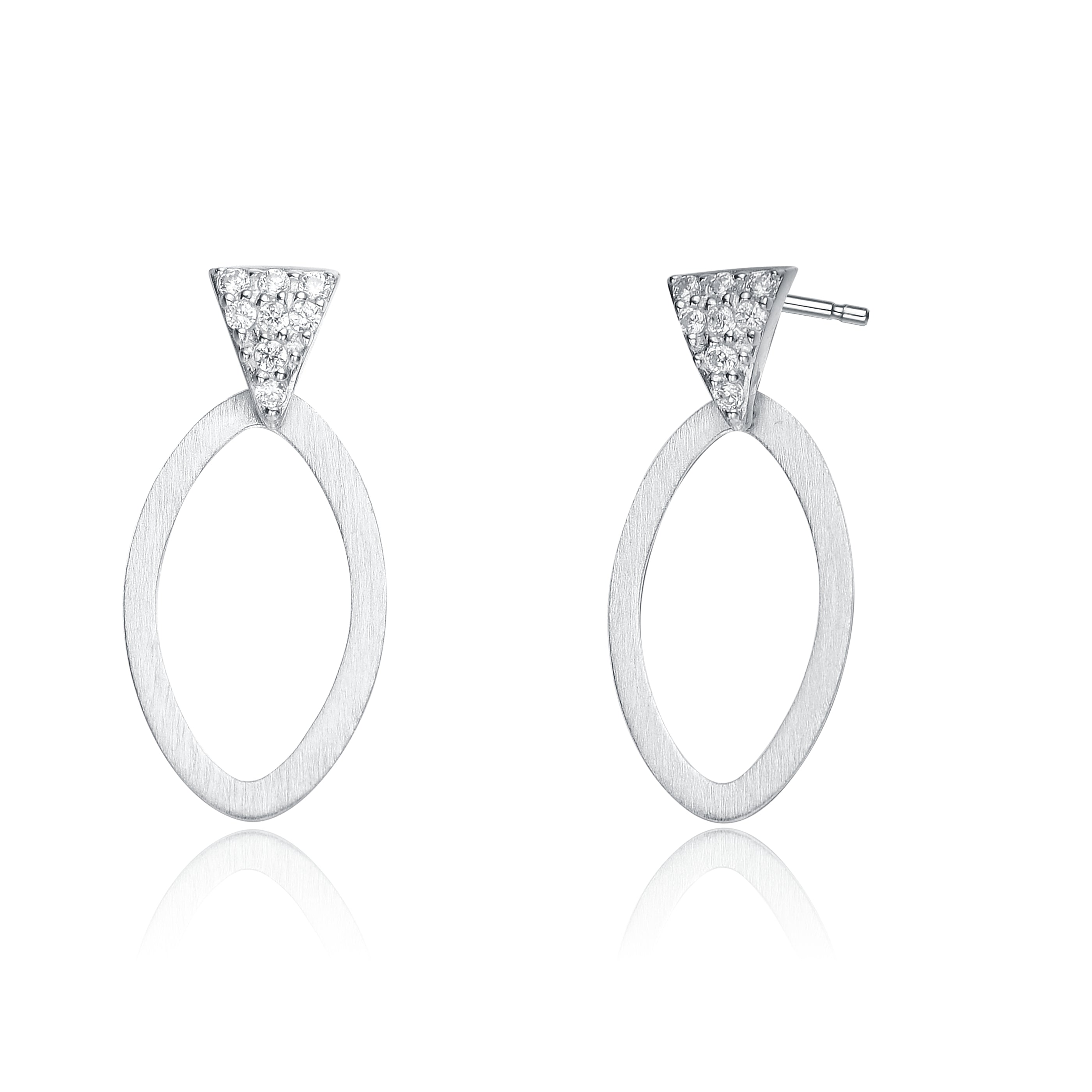 For the person who favors simplicity and grace, these earrings are a treasure. Pave cubic zirconia stones form a triangle at the post, while the hoop itself is composed of sterling silver.