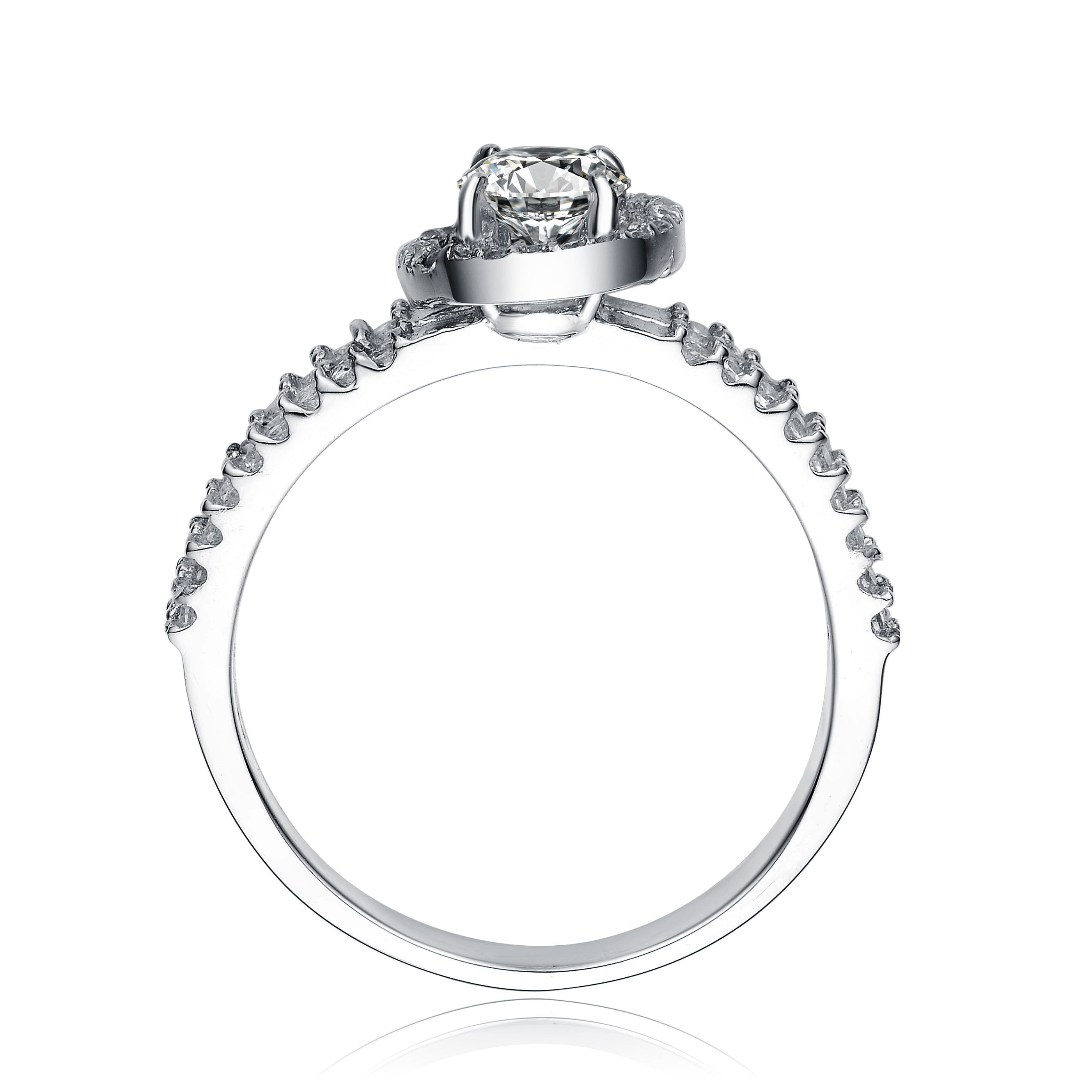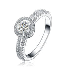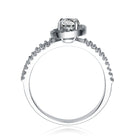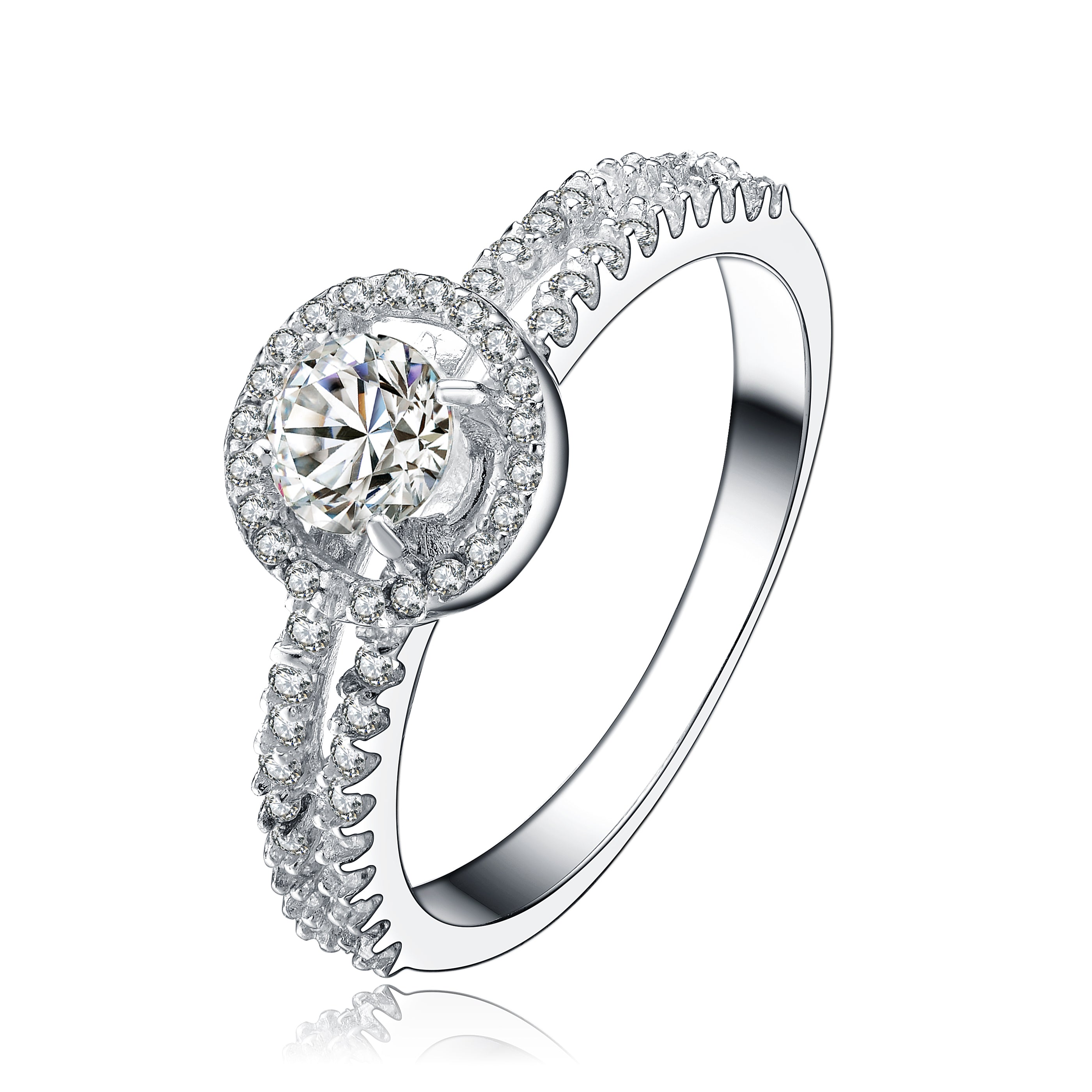 Ready to pop the big question? You can’t go wrong with this sterling silver cubic zirconia solitaire ring featuring a halo and extra stones in two rows along the band.