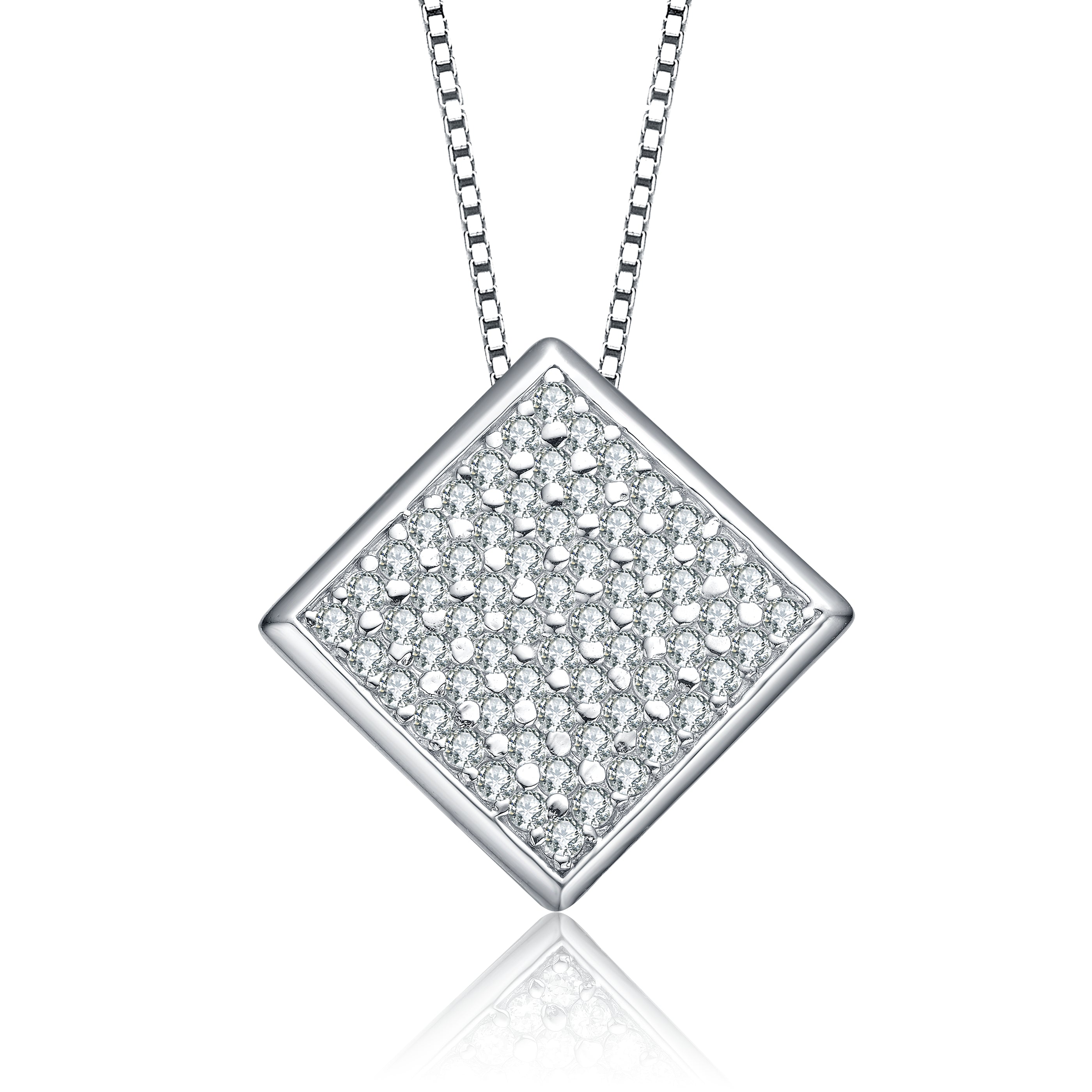 Sterling Silver Cubic Zirconia Square Pendant Necklace