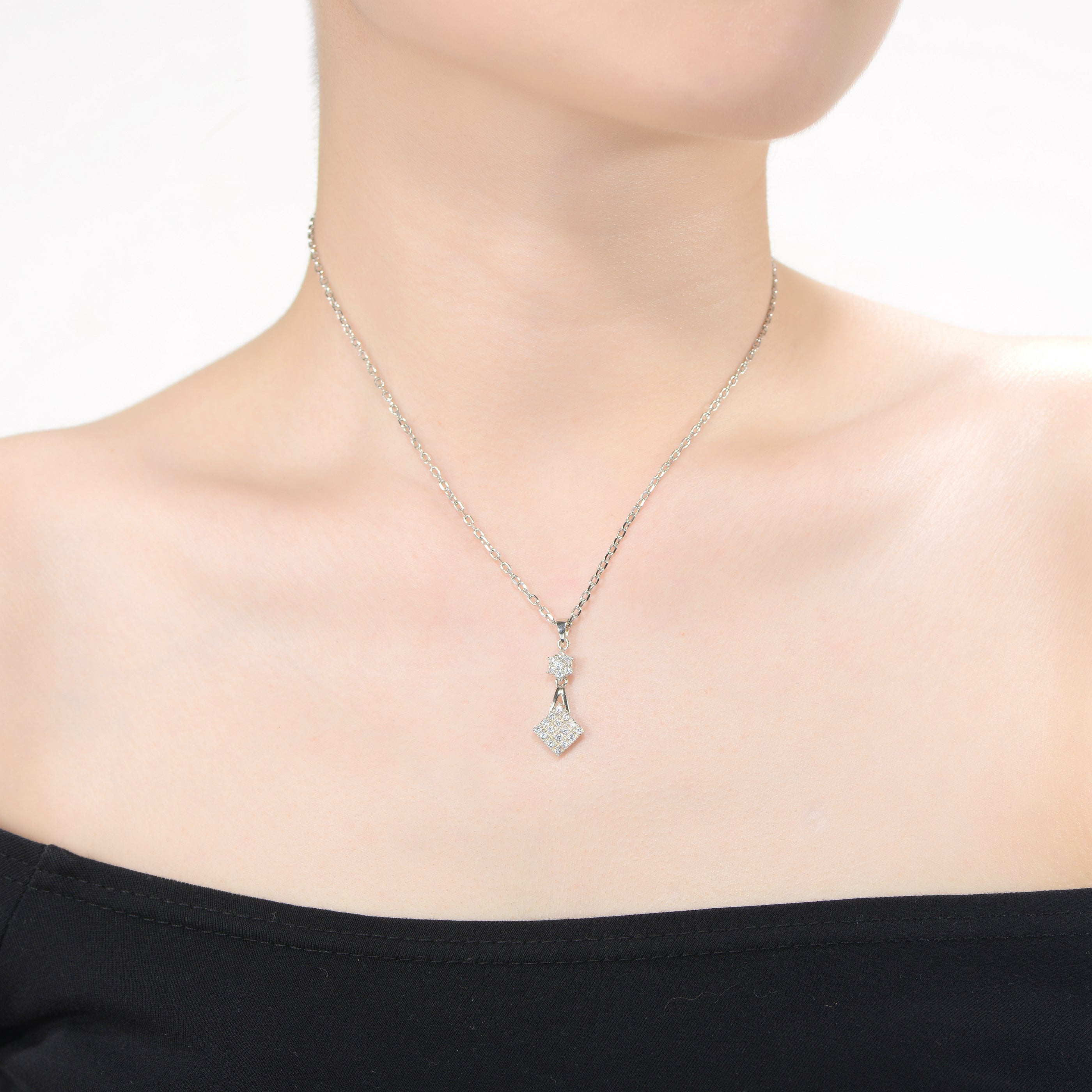 This sophisticated pendant features a sparkling cubic zirconia star attached above a larger square cubic zirconia encrusted charm. Both elements are set in polished sterling silver, highlighting the brilliance of the stones. The pendant is suspended from a delicate sterling silver chain, making it an exquisite piece for adding a touch of glamour to any outfit.