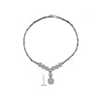 This elegant and gorgeous necklace can add sophistocation to any outfit. Each piece features gleaming white cz stones dropping from the center.Β