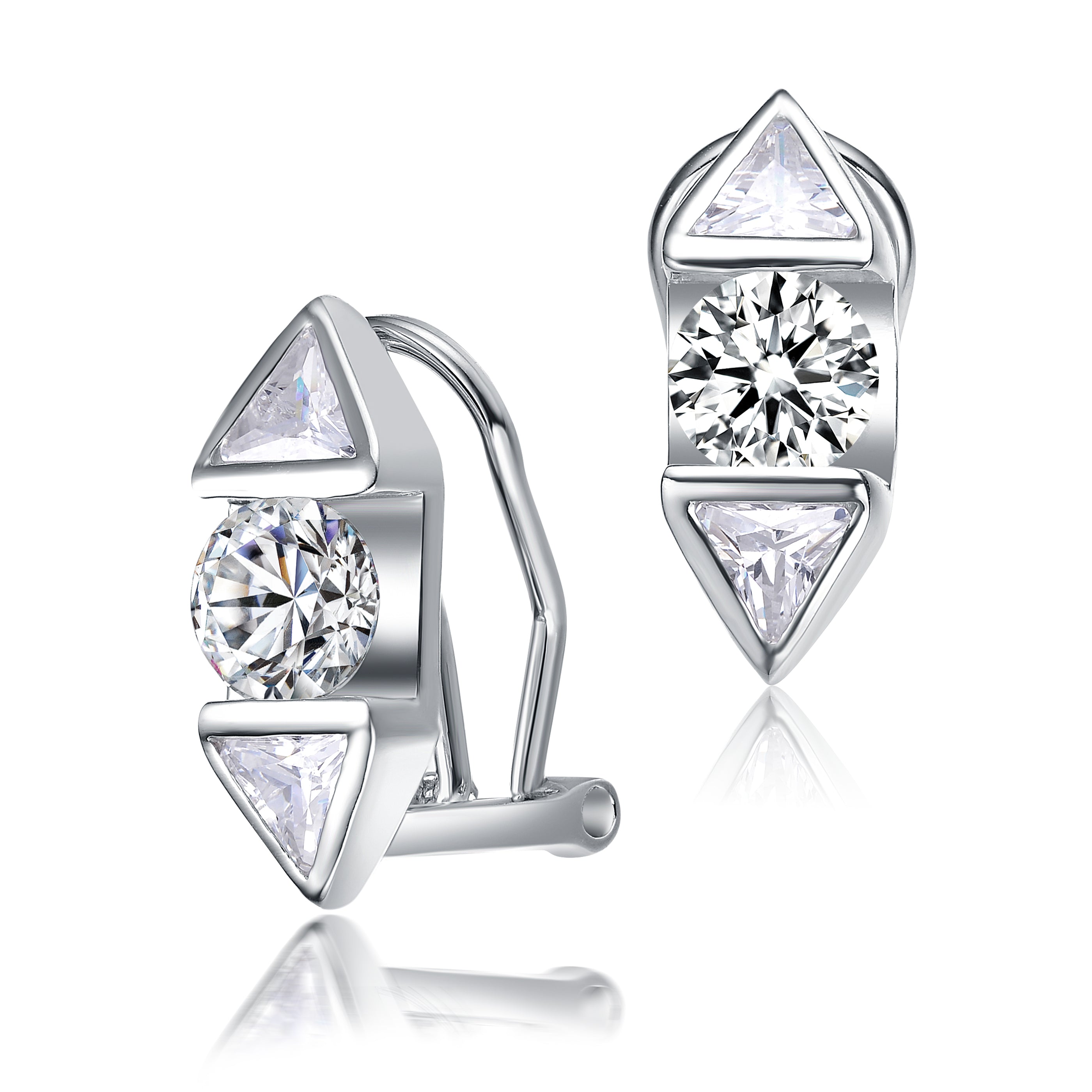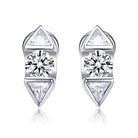 These stunning stud earrings feature a classic design with a modern twist. Each earring is crafted from high-quality sterling silver and showcases a brilliant round-cut cubic zirconia stone at its center. The stones are securely set in a four-prong setting, allowing maximum light to pass through and enhance their sparkle. Perfect for adding a touch of elegance to any outfit, these earrings are ideal for both everyday wear and special occasions. Their timeless appeal and radiant shine make them a must-have addition to any jewelry collection.