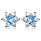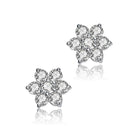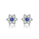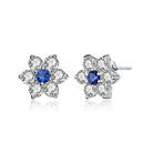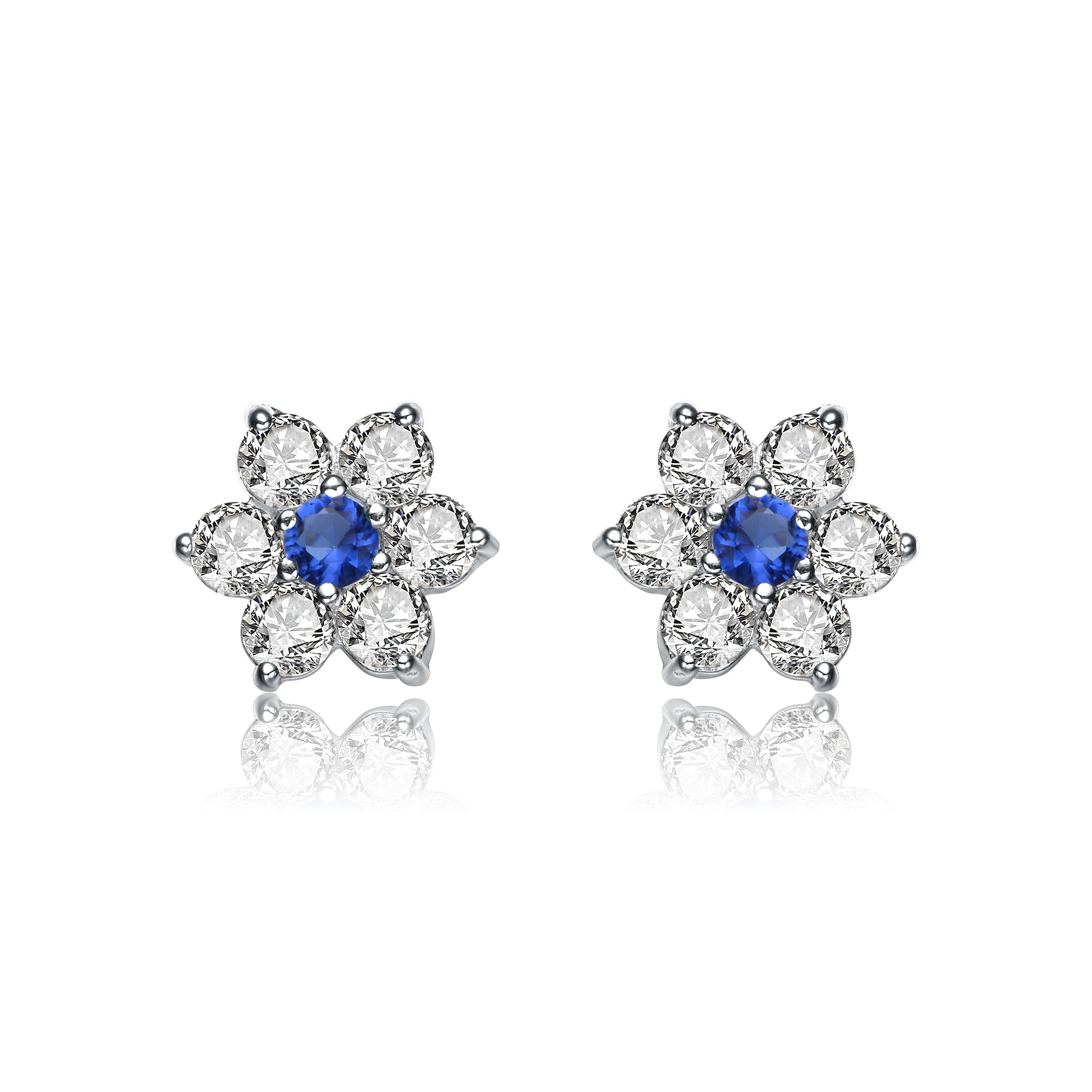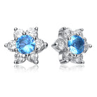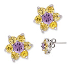 Bring some color to your ensemble with these gorgeous studs. Featuring a flower design with yellow and purple stones, these earrings are cheerful and unforgettable. Also Available in clear, clear and blue and sapphire cubic zirconia.
