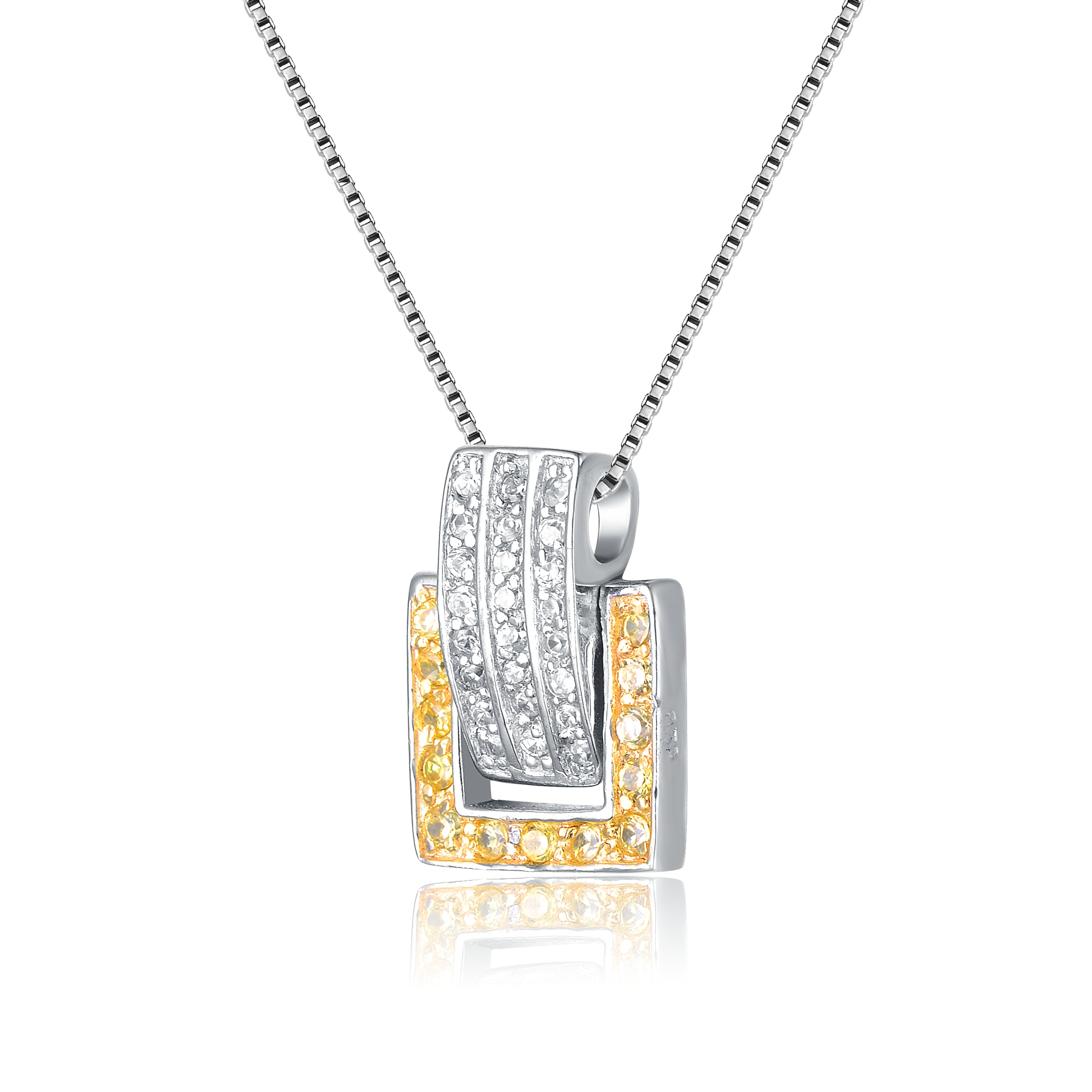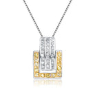 A yellow frame of cubic zirconia stones draws the eye in when this sterling silver necklace is around your neck. It also displays clear cubic zirconia stones for an extra effect.