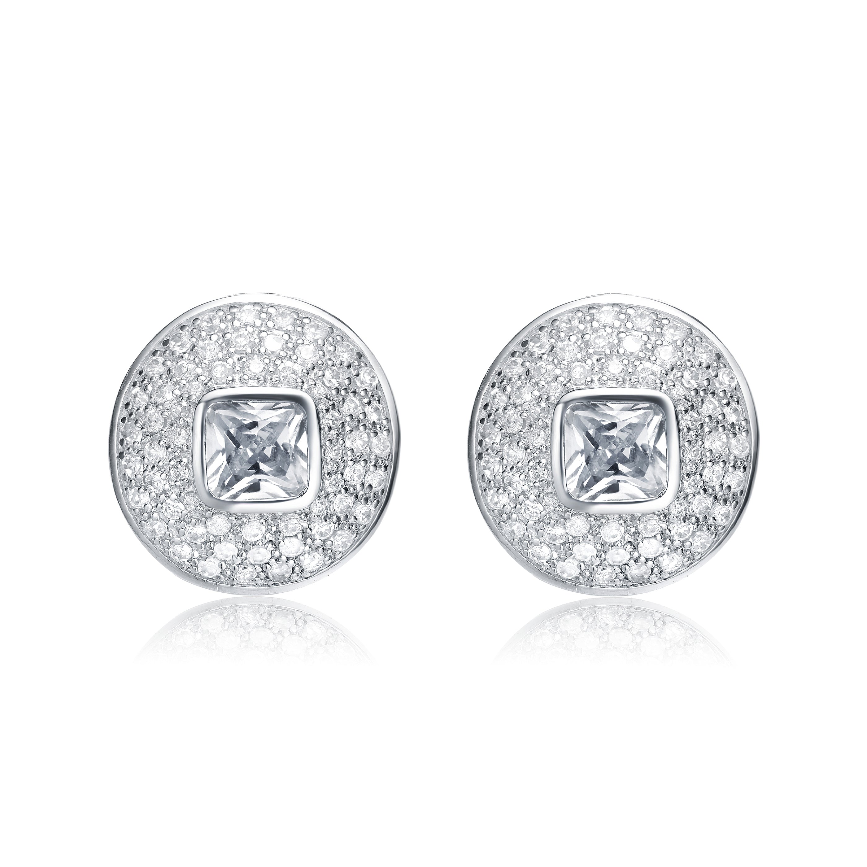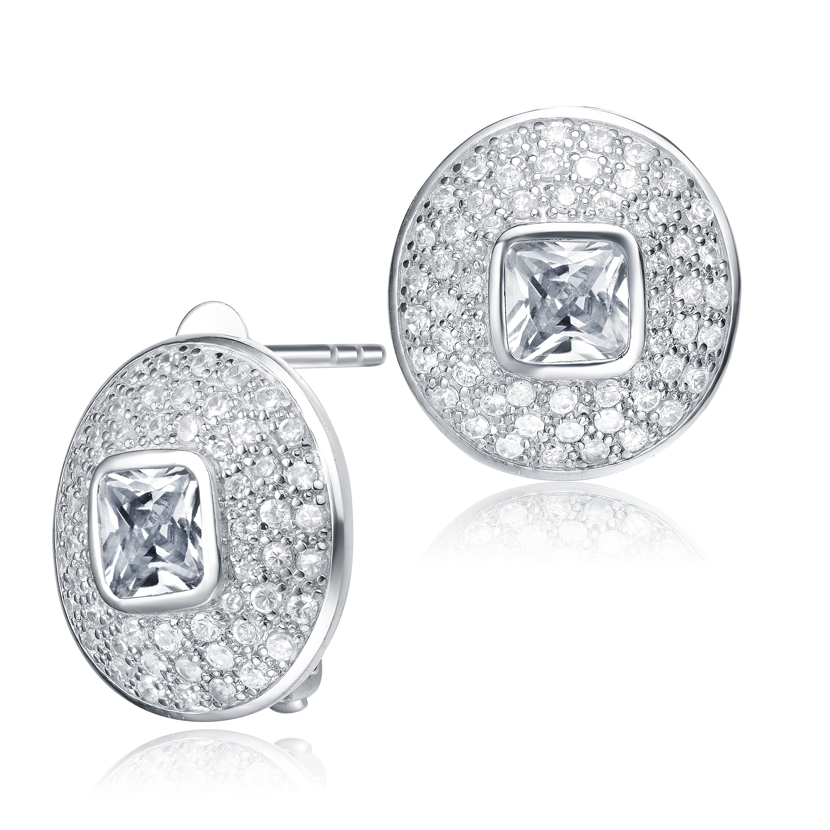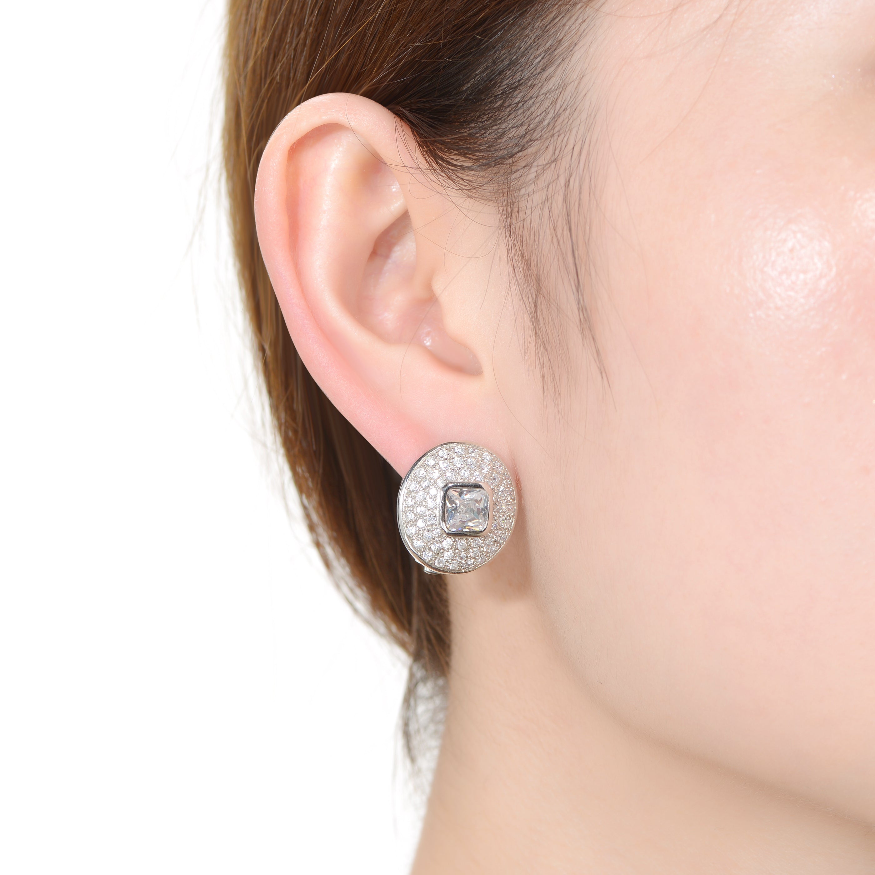 Elevate your elegance with these stunning sterling silver stud earrings featuring a sparkling cushion-cut cubic zirconia centerpiece. Surrounded by a halo of shimmering pave-set cubic zirconia stones, these earrings offer timeless sophistication and brilliance. Perfectly crafted for everyday wear or special occasions, the versatile design pairs effortlessly with any outfit.