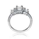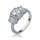 An emerald cut cubic zirconia center stone steals the spotlight in this sterling silver ring. For added benefit if also features two smaller surrounding stones. Crafted from Rhodium plated .925 sterling silver and clear cubic zirconia. It is a perfect piece for gift.